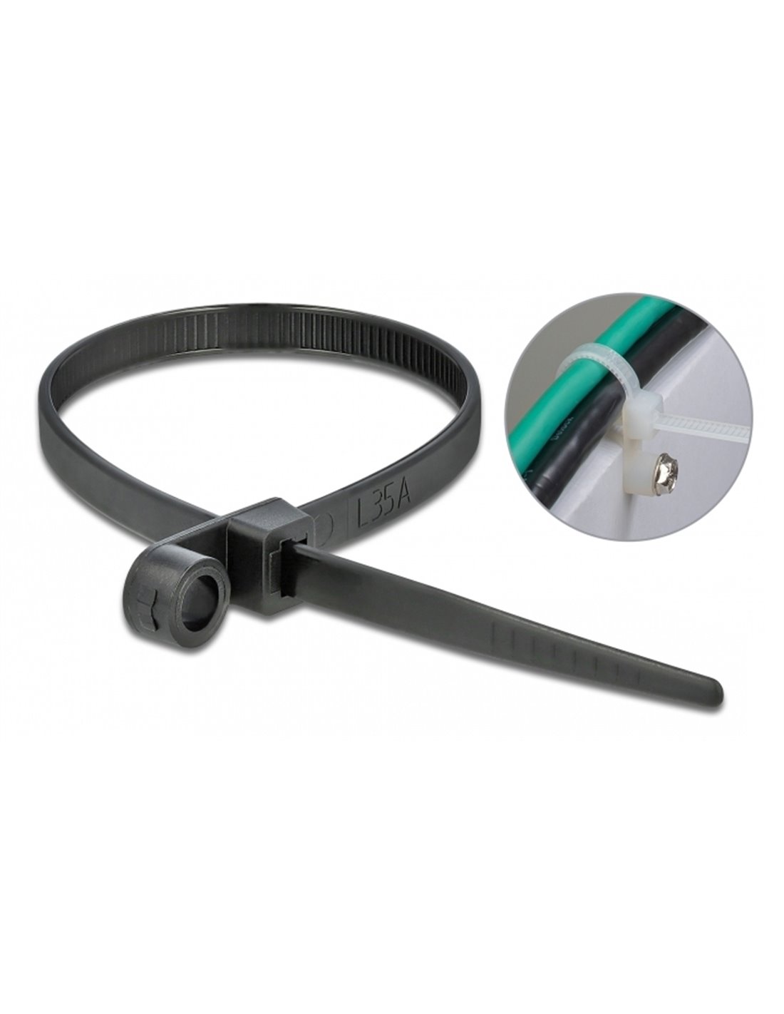 DELOCK Δεματικά καλωδίων 18950 με οπή στερέωσης, 200x4.8mm, μαύρα, 10τμχ