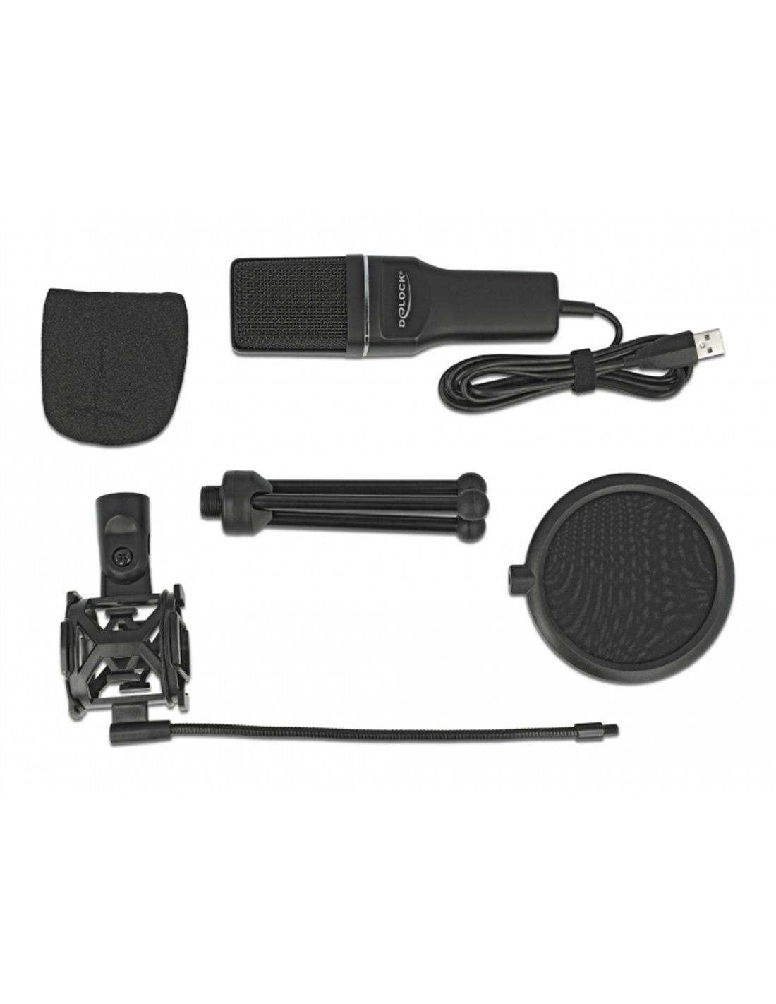 DELOCK Mικρόφωνο studio με pop φίλτρο & αντιανέμιο 66331, πυκνωτικό, USB