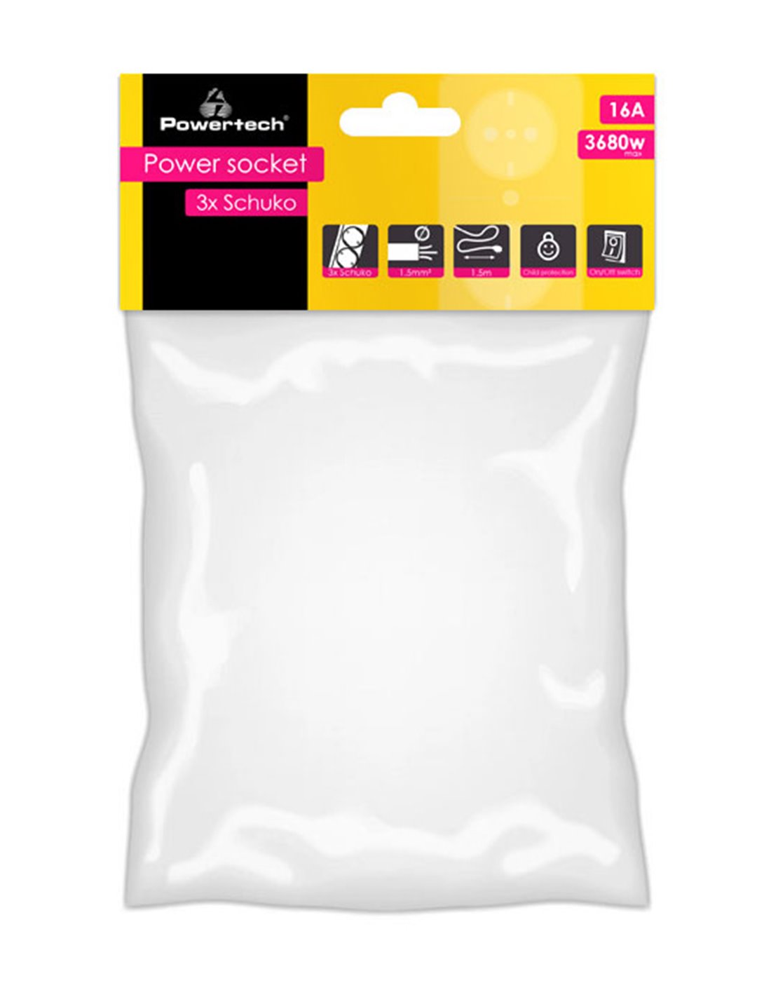 POWERTECH πολύπριζο PT-873, 3x schuko, 16A, 1.5m, λευκό