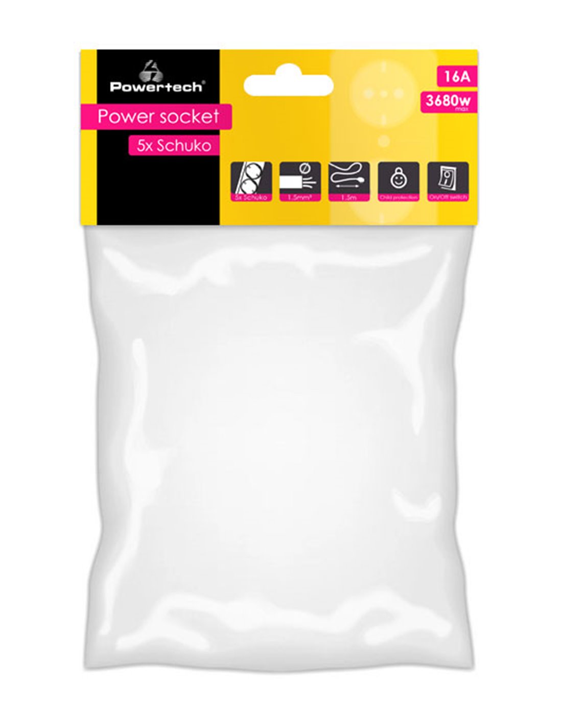 POWERTECH πολύπριζο PT-875, 5x schuko, 16A, 1.5m, μαύρο
