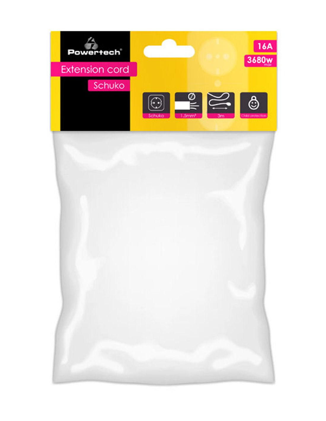POWERTECH μπαλαντέζα ρεύματος PT-888, 1x schuko, 16A, 3m, λευκή