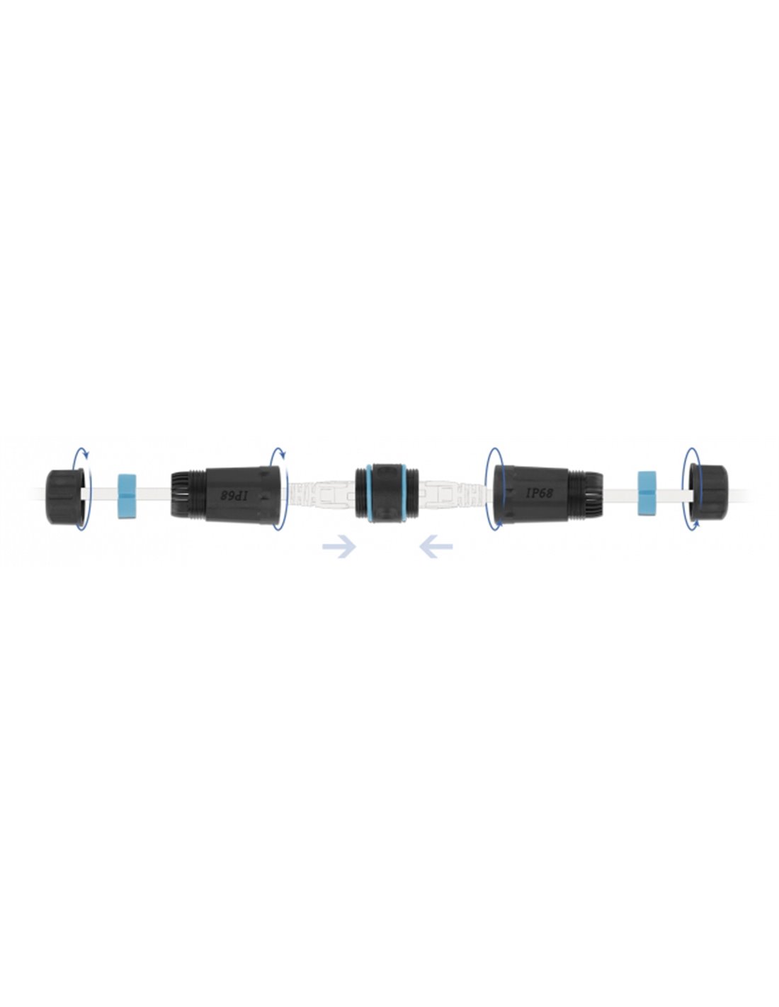 Αδιάβροχος αμφίδρομος σύνδεσμος καλωδίου RJ45 Cat.6A ιδανικός για συνδέσεις ethernet σε εξωτερικούς χώρους.