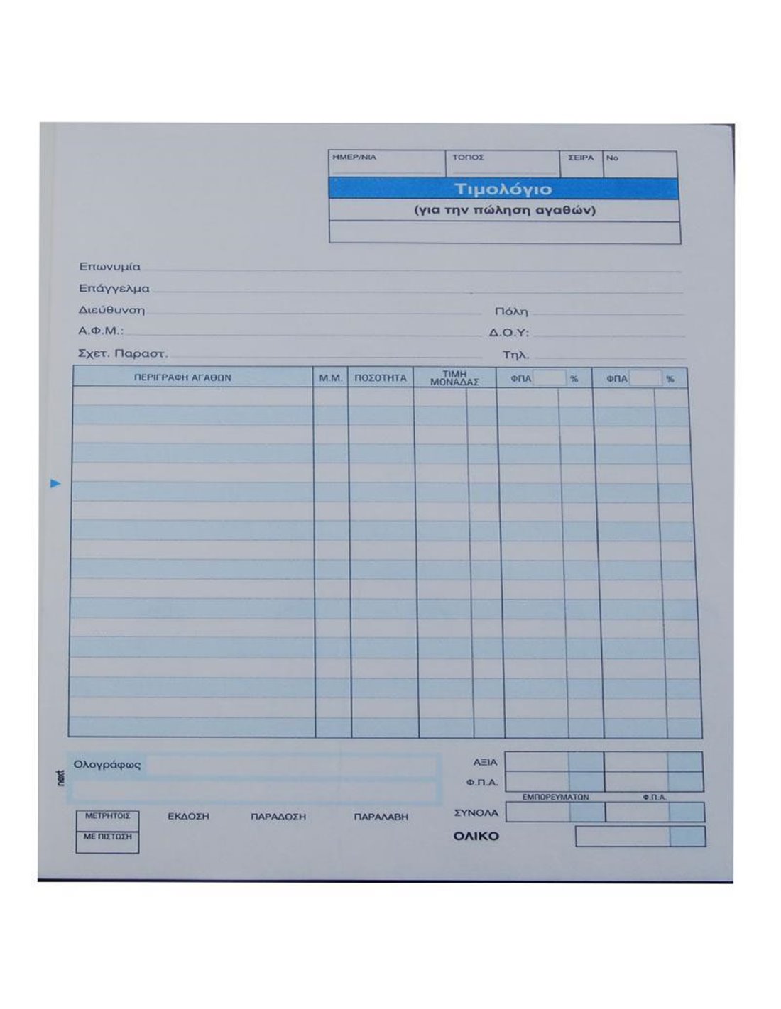 Τιμολόγιο για πώληση αγαθών, τριπλότυπο 3x50 φύλλα. Διαστάσεις: 17x25εκ.