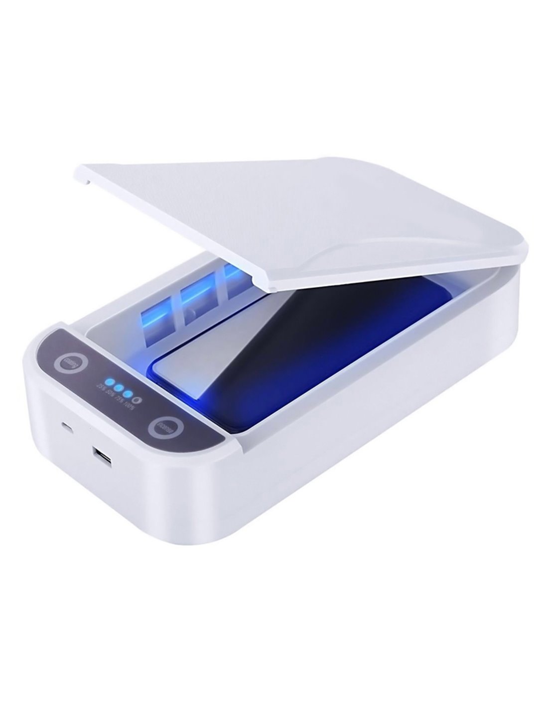 Αποστειρωτής υπεριώδους ακτινοβολίας για αποστείρωση κινητών τηλεφώνων, κοσμημάτων, κλειδιών και άλλων αντικειμένων σε ελάχιστο χρόνο.Εξοπλισμένος με λυχνία UV υπεριώδους ακτινοβολίας που εξοντώνει γρήγορα το 99,99% των μικροοργανισμών.Είναι κατάλληλο για αποστείρωση κινητών έως 6” και αποστειρώνει με ασφαλή τρόπο ηλεκτρονικές συσκευές χωρίς να επηρεάζει τη λειτουργία τους ή να τις βάζει σε κίνδυνο.