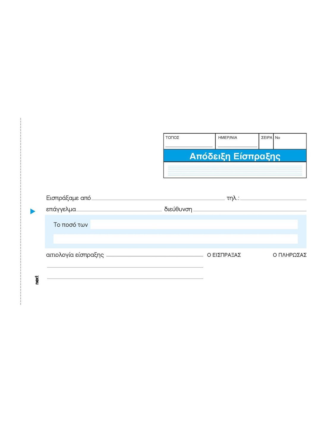 Απόδειξη είσπραξης, τριπλότυπη 3x50 φύλλα. Διαστάσεις: 10x17εκ.