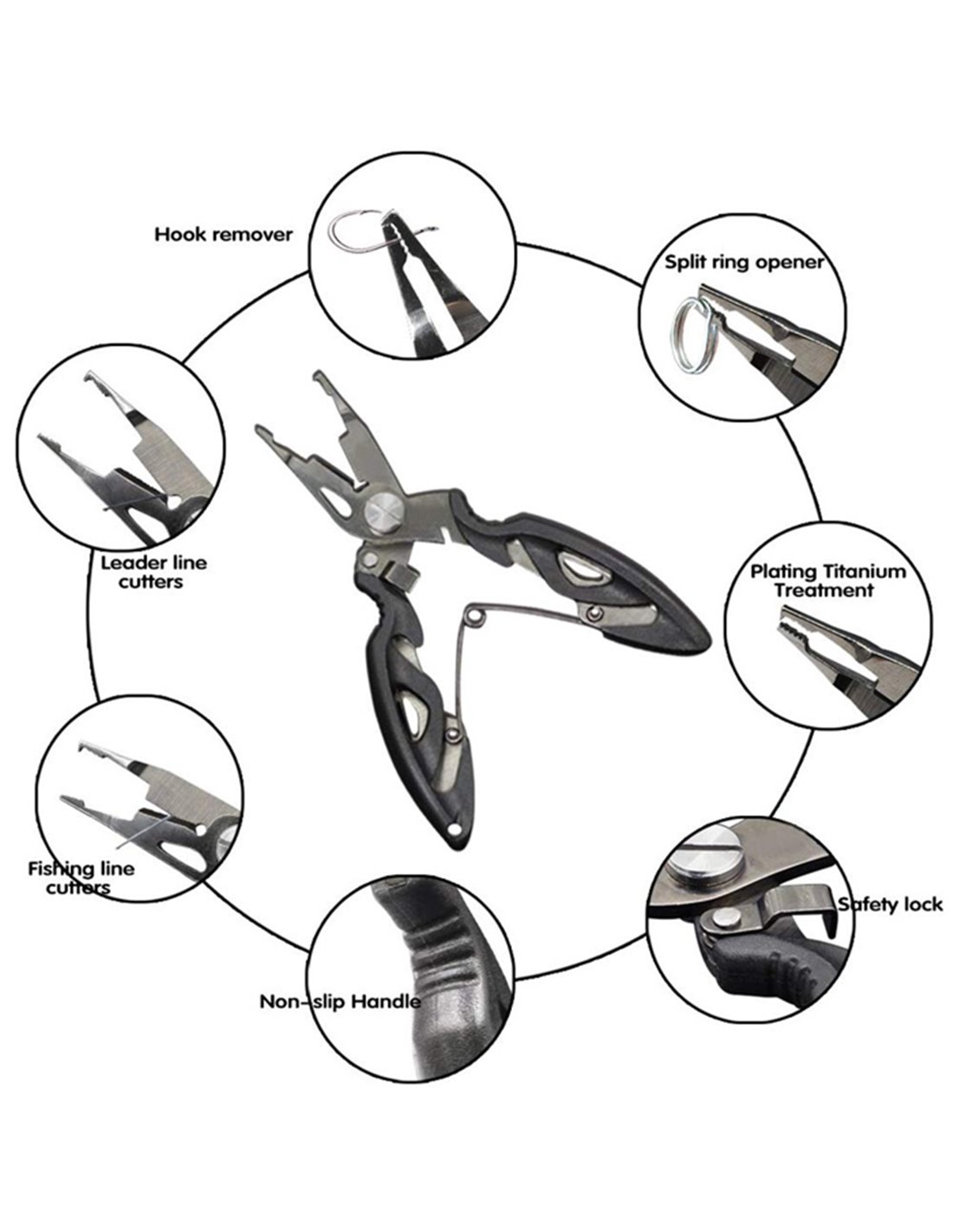 Ανοξείδωτη πένσα-ψαλιδάκι ψαρέματος. Χρησιμεύει στο κόψιμο της πετονιάς αλλά και το ξαγκίστρωμα ενώ διαθέτει αντιολισθητική λαβή για εύκολο και σταθερό κράτημα ακόμη και με βρεγμένα χεριά. Είναι ένα ιδανικό πολυεργαλείο για όλους τους λάτρεις του ψαρέματος.