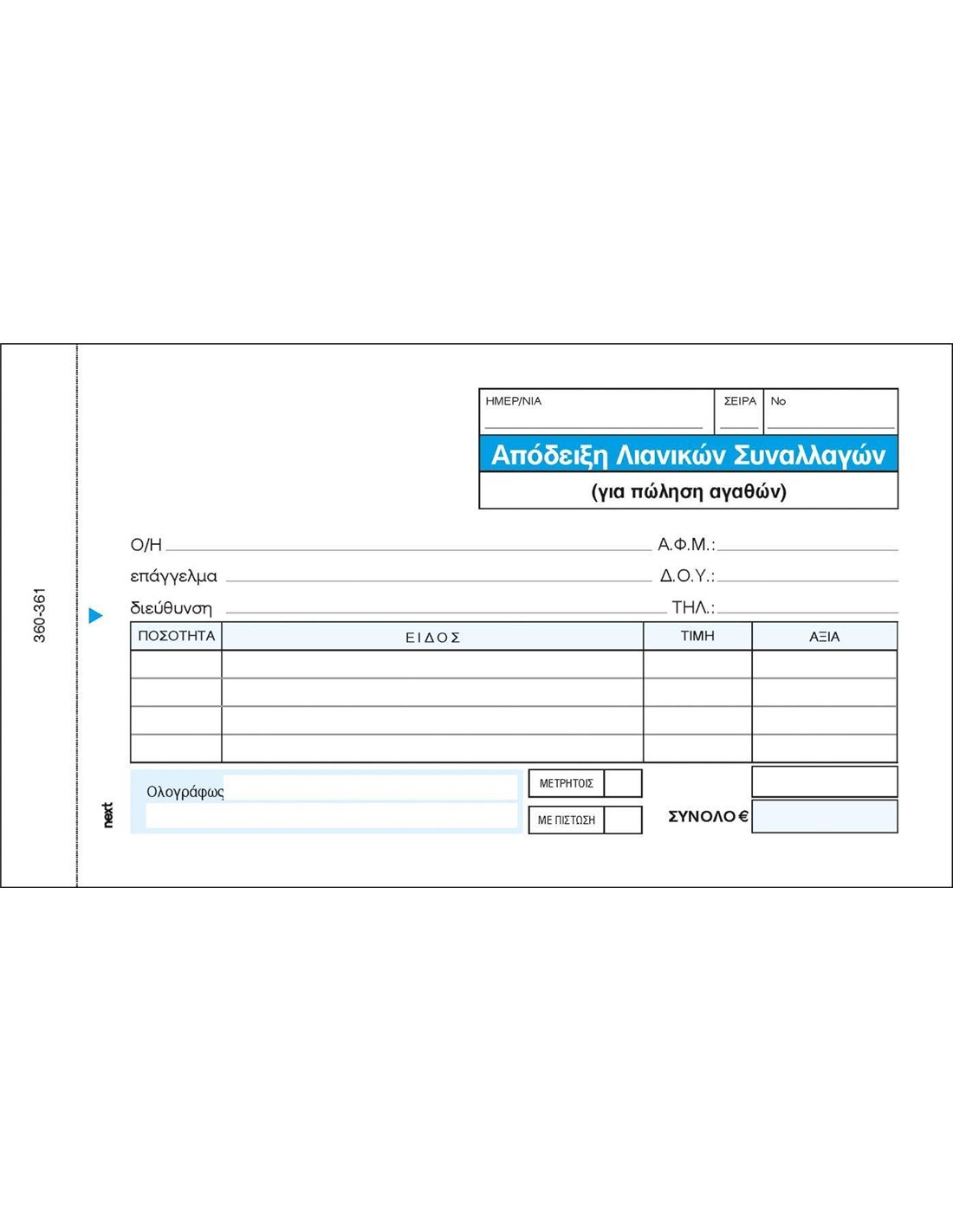 Απόδειξη λιανικών συναλλαγών (για πώληση αγαθών), διπλότυπη 2x50 φύλλα. Διαστάσεις: 10x17εκ.