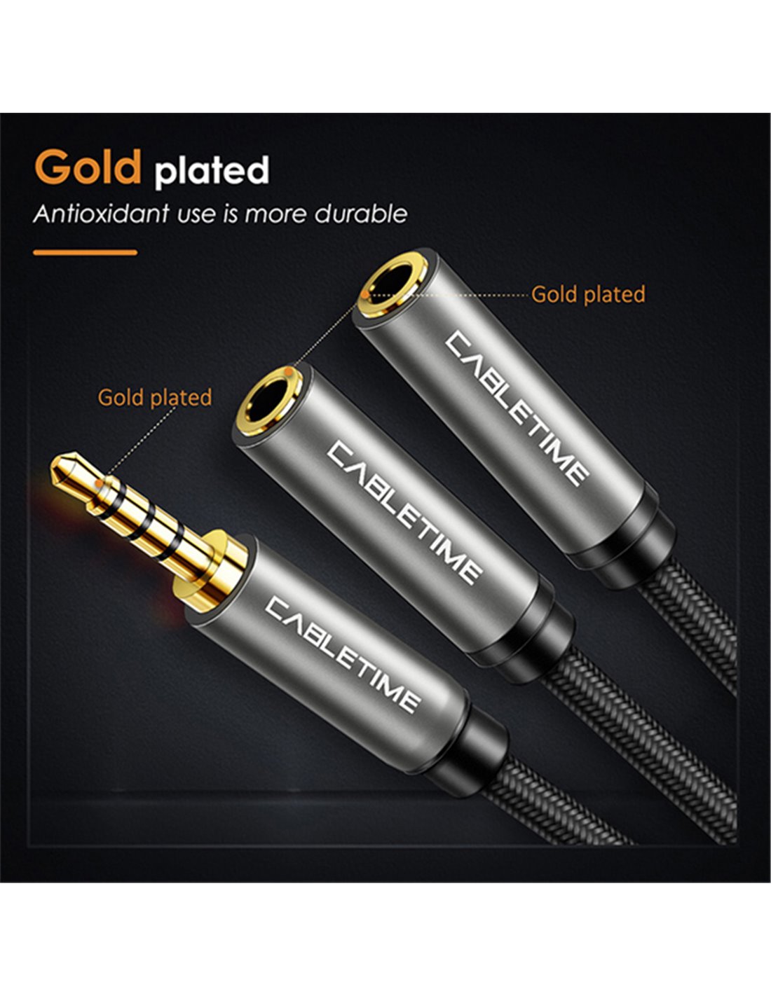 CABLETIME καλώδιο ήχου 3.5mm σε 2x 3.5mm CT-P12G4P, 4-pole, 20cm, μαύρο