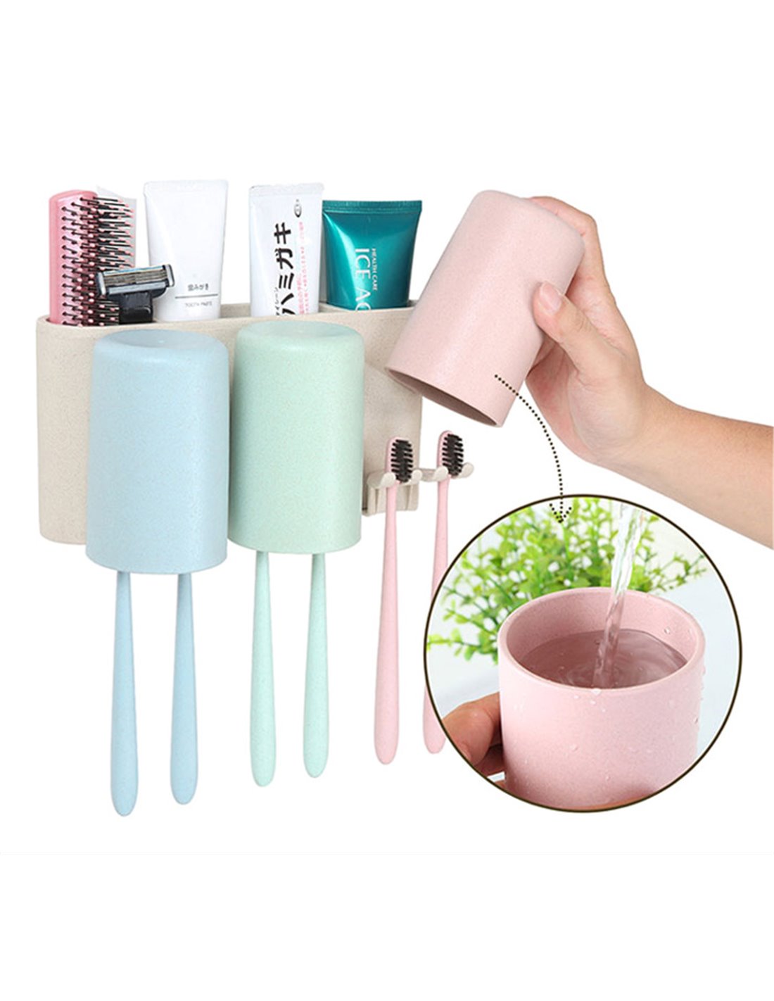 Βάση οδοντόβουρτσας με 3 ποτήρια της Ecoco και κομψή εμφάνιση, κατασκευασμένη από Eco-friendly υλικά. Τοποθετείται εύκολα στον τοίχο με αυτοκόλλητα τα οποία αποσπώνται από την βάση, διευκολύνοντας τον καθαρισμό της. Διαθέτει 3 ποτήρια και 3 θήκες όπου μπορούν να τοποθετηθούν οδοντόβουρτσες, οδοντόκρεμες ή αλλά αντικείμενα υγιεινής.