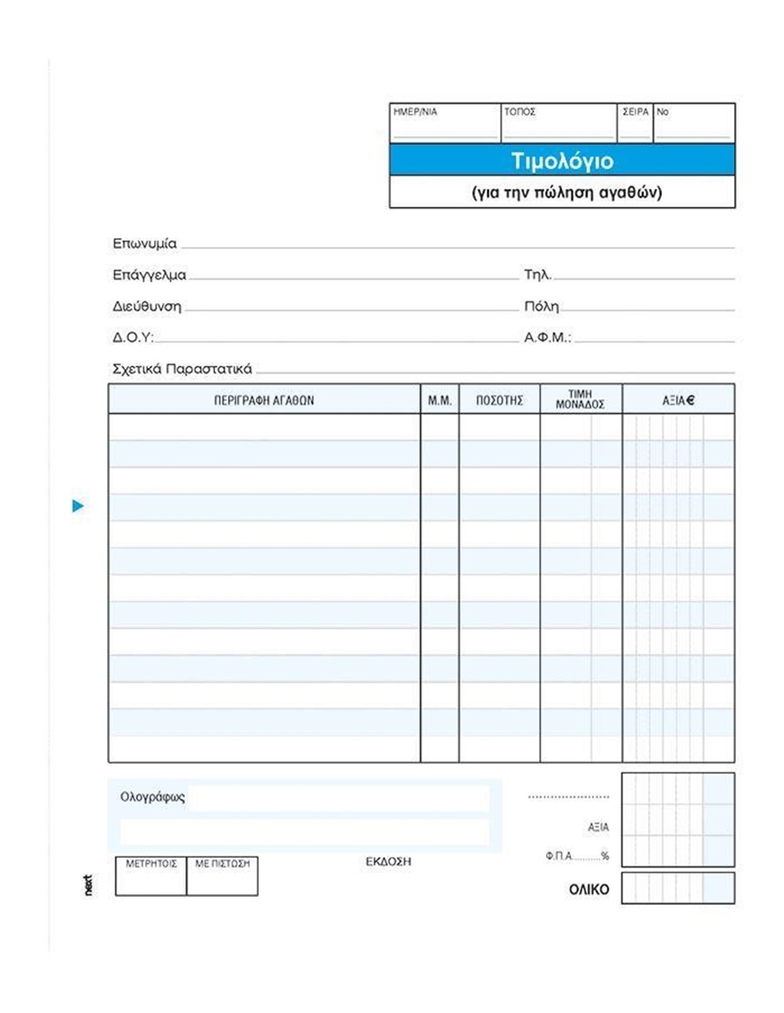 Next τιμολόγιο Πώλησης 2x50φ 17x20εκ.