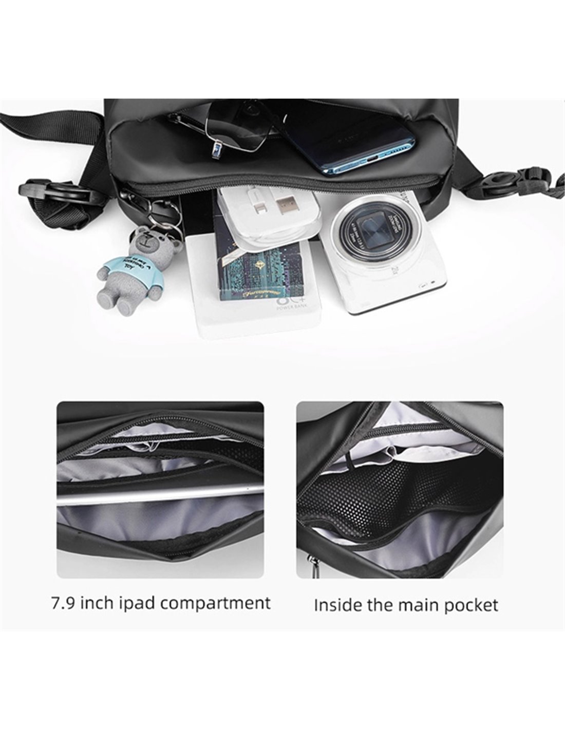 MARK RYDEN τσάντα ώμου MR8616, με θήκη tablet 7.9", 4L, αδιάβροχη, μαύρη