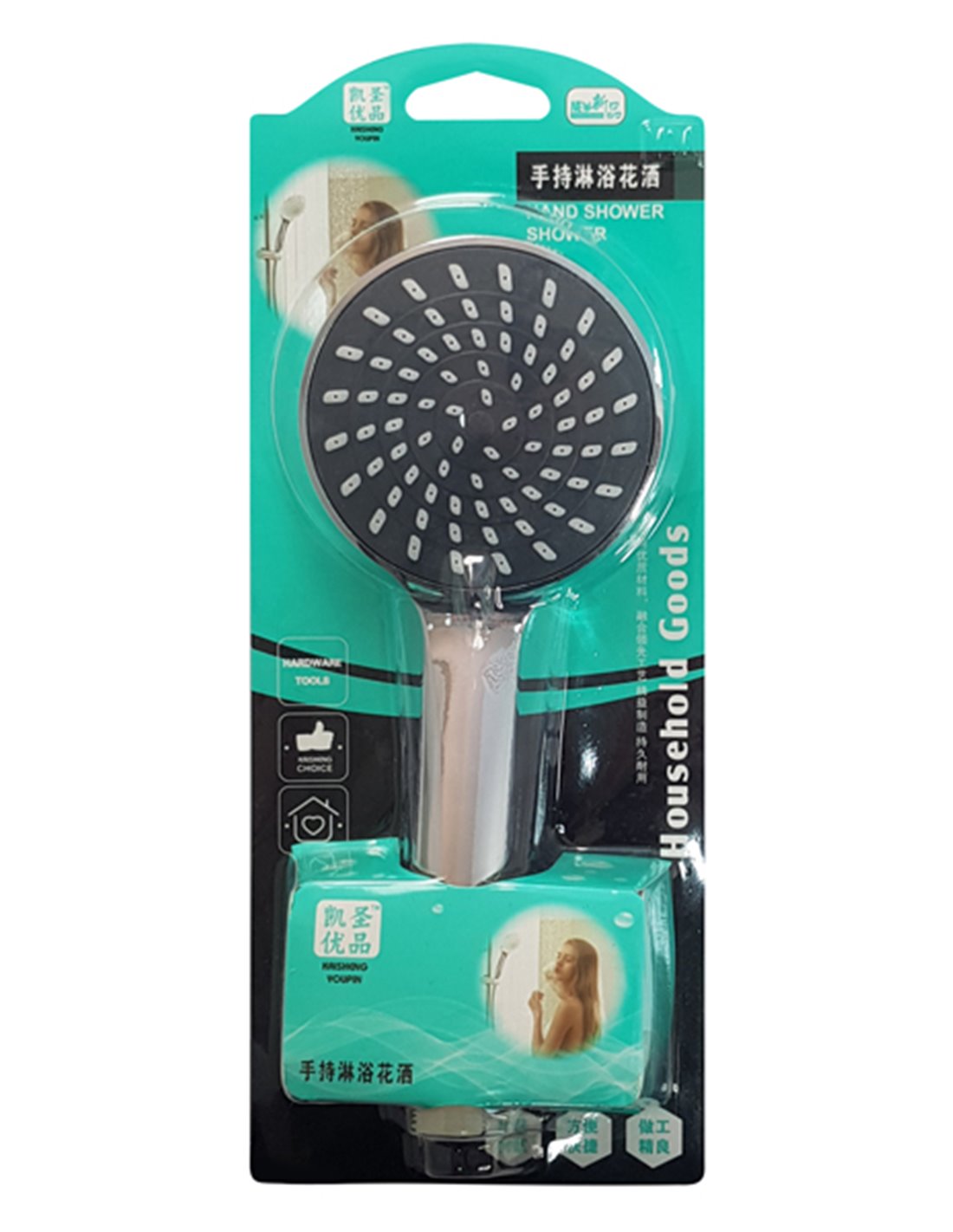 Τηλέφωνο μπάνιου με μεγάλη κεφαλή και ελαστικές οπές εξαγωγής νερού, οι οποίες αποτρέπουν το βούλωμα. Η κεφαλή έχει διάμετρο περίπου 9.8cm και παρέχει πλούσια ποσότητα νερού.