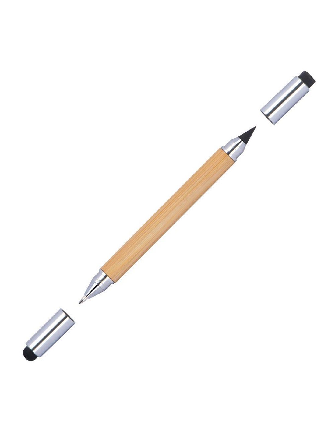 Μολύβι - στυλό (4 σε 1) Υ14,8xØ1,1εκ μπαμπού. Ένα πολυλειτουργικό εργαλείο γραφής από bamboo που συνδυάζει στυλό διαρκείας με μπλε μελάνι, εργαλείο για οθόνες αφής, μολύβι και γόμα για διόρθωση. Ο μοντέρνος και φιλικός προς το περιβάλλον σχεδιασμός, καθιστούν αυτό το οργανο γραφής μοναδικό για κάθε χρήση. Διαστάσεις: Υ14,8xØ1,1εκ. Δυνατότητα προσωποποίησης για διαφημιστικό.
