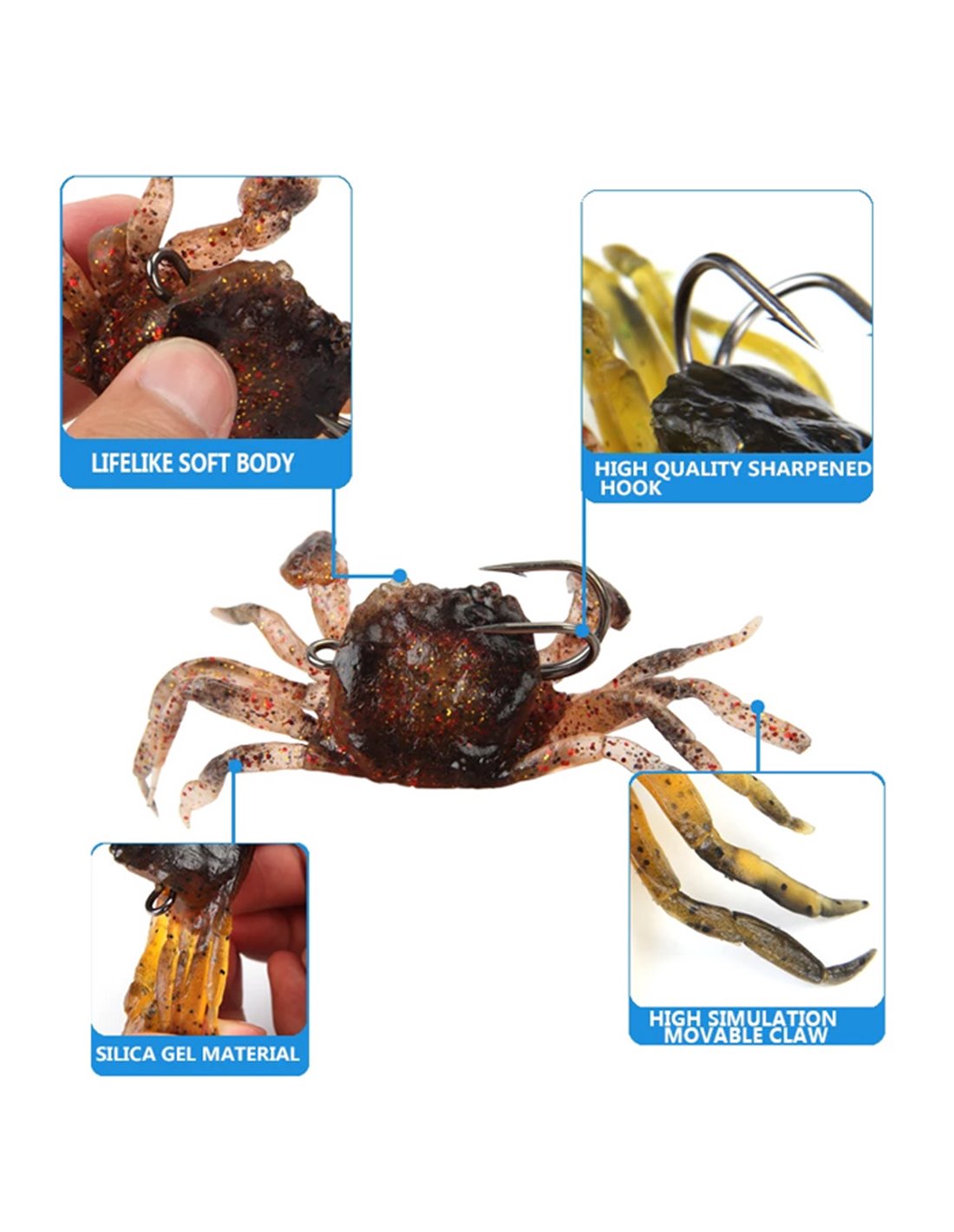 Τεχνητό δόλωμα ψαρέματος σε σχήμα καβούρι με εξαιρετικά μαλακό σώμα, κατασκευασμένο από σιλικόνη.