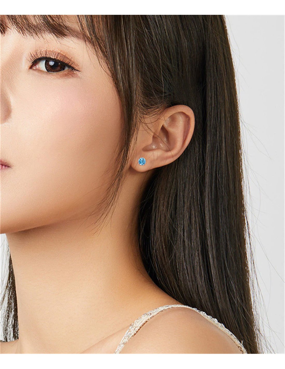 Καρφωτά σκουλαρίκια Bamoer κατασκευασμένα από ασήμι 925, επιπλατινωμένα, διακοσμημένα με αστραφτερή κυβική ζιρκόνια, μπλε χρώματος.