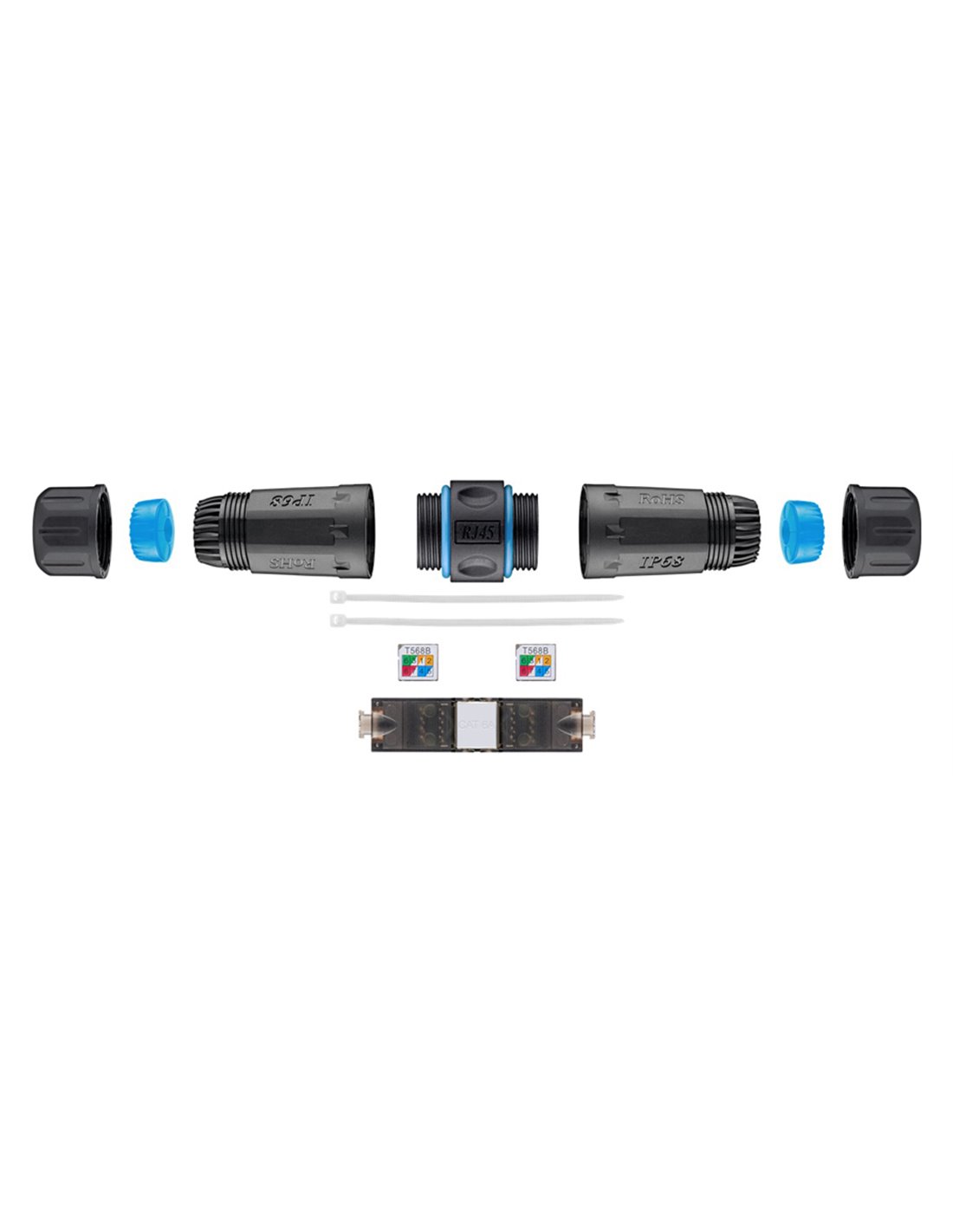 Αδιάβροχος σύνδεσμος καλωδίου RJ45 Cat 6A, ιδανικός για συνδέσεις ethernet σε εξωτερικούς χώρους. Προσφέρει αδιαβροχοποίηση επιπέδου IP68, προστατεύοντας την συνδεσμολογία από σκόνη και νερό. Εγκαθίσταται εύκολα και γρήγορα και είναι συμβατό με καλώδια διαμέτρου 5-7.5mm.