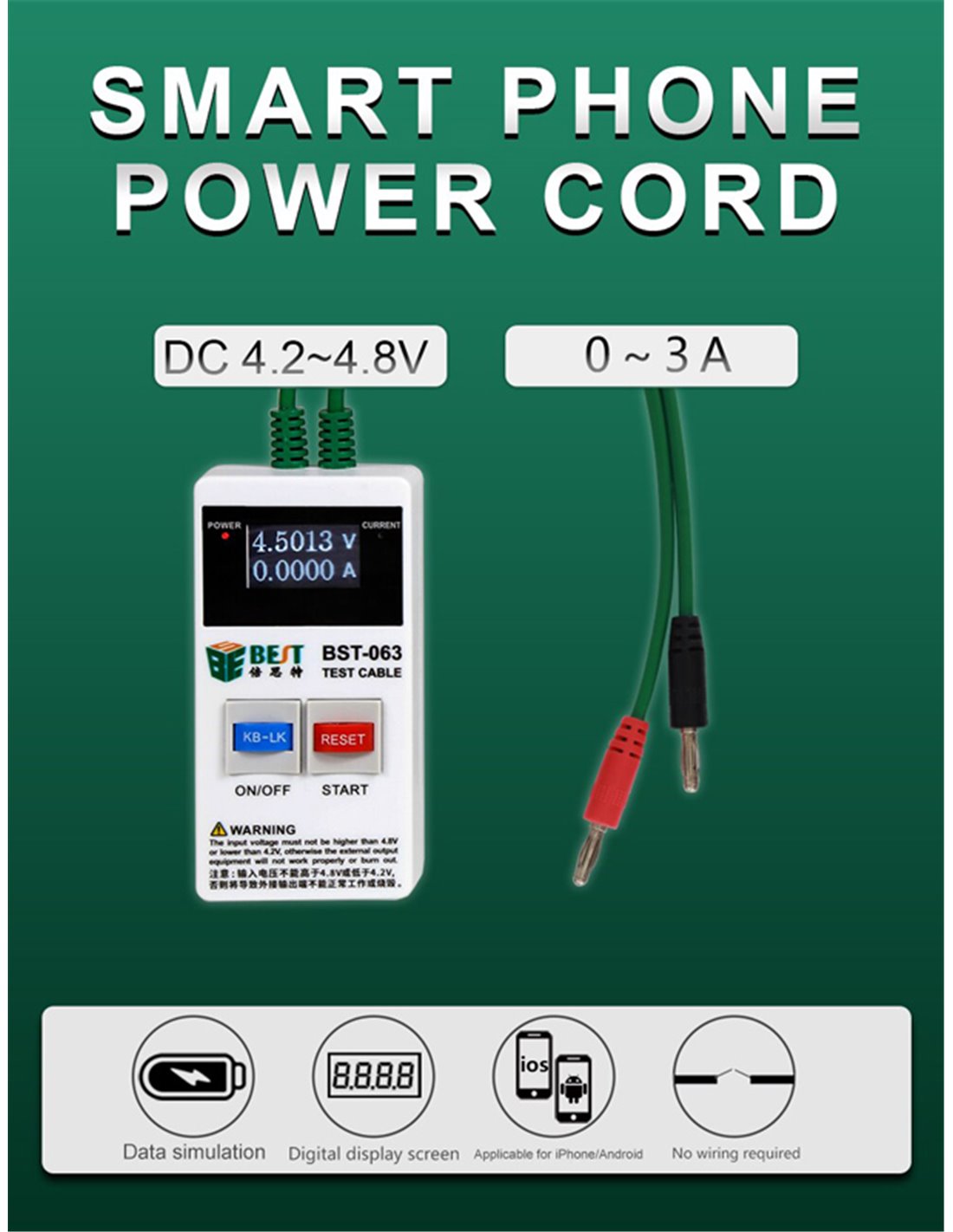 Repair tool της Best για τον έλεγχο αμπέρ και voltage σε iPhone & Android smartphones. Στην συσκευασία συμπεριλαμβάνονται flex cables για την σύνδεση με τα περισσότερα μοντέλα Android και iPhone.