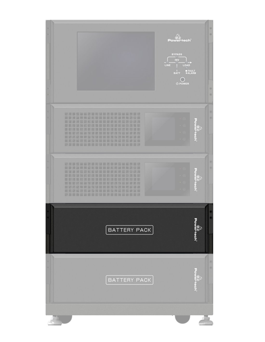 Battery pack Powertech για εγκατάσταση μπαταριών UPS, χωρητικότητας 7A, 9Ah και 10Ah. Μέσα στο κυτίο μπορούν να τοποθετηθούν 16 έως 20 μπαταριές, ενώ η τοποθέτηση του μπορεί να γίνει οριζόντια σε καμπίνα rack 19" ή κάθετα σε επιδαπέδιο πύργο.