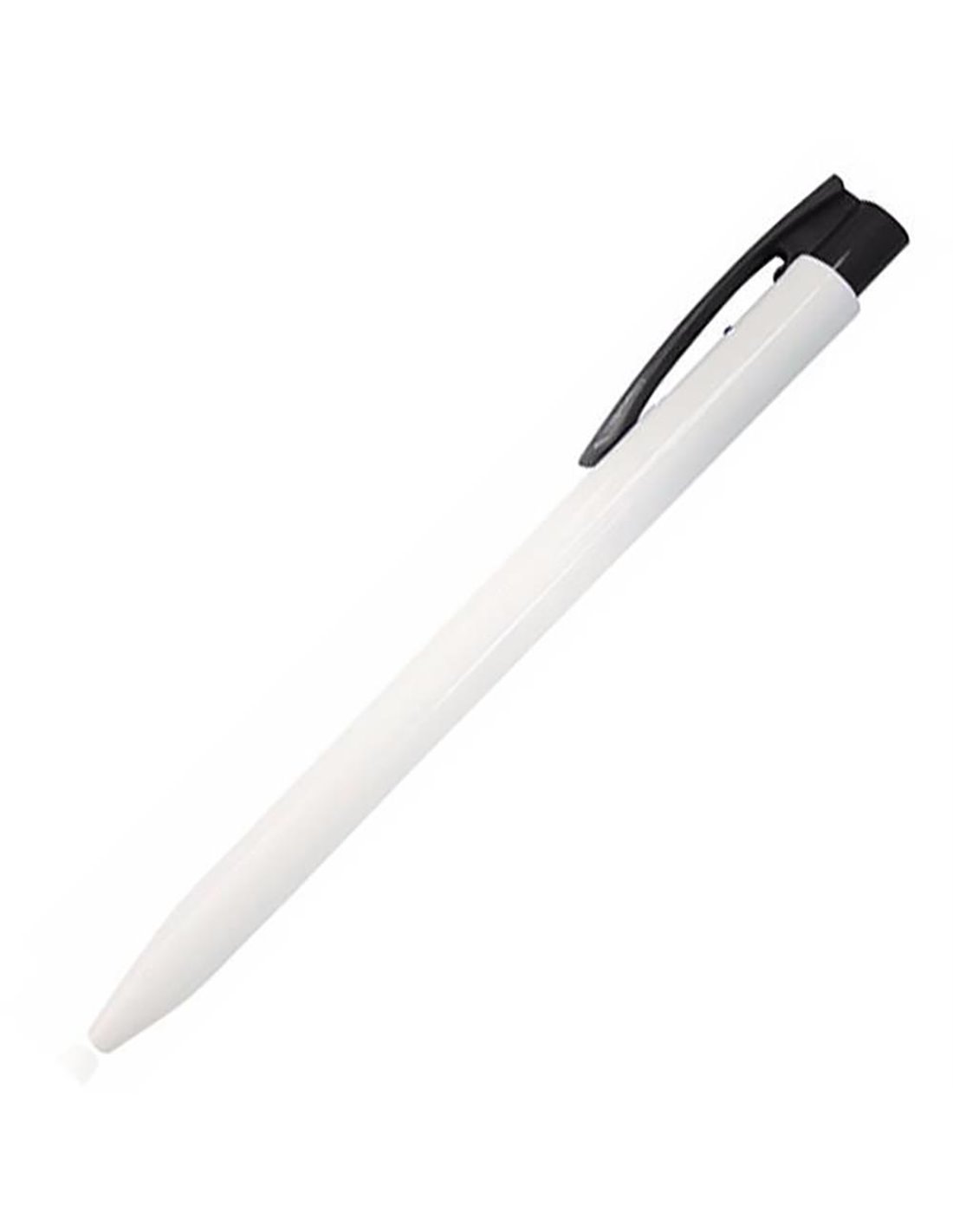 Στυλό διαρκείας λευκό με μαύρο κλιπ 0,8mm. Δυνατότητα εκτύπωσης του δικού σας λογότυπου. Κατάλληλο και για διαφημιστικό. Κόστος εκτύπωσης: 0,10€/τεμ, ελάχιστη χρέωση: 100€, Εξαιρετικά απαλή γραφή. Με υψηλής ποιότητας μελάνι. Χρώμα γραφής: μπλε.