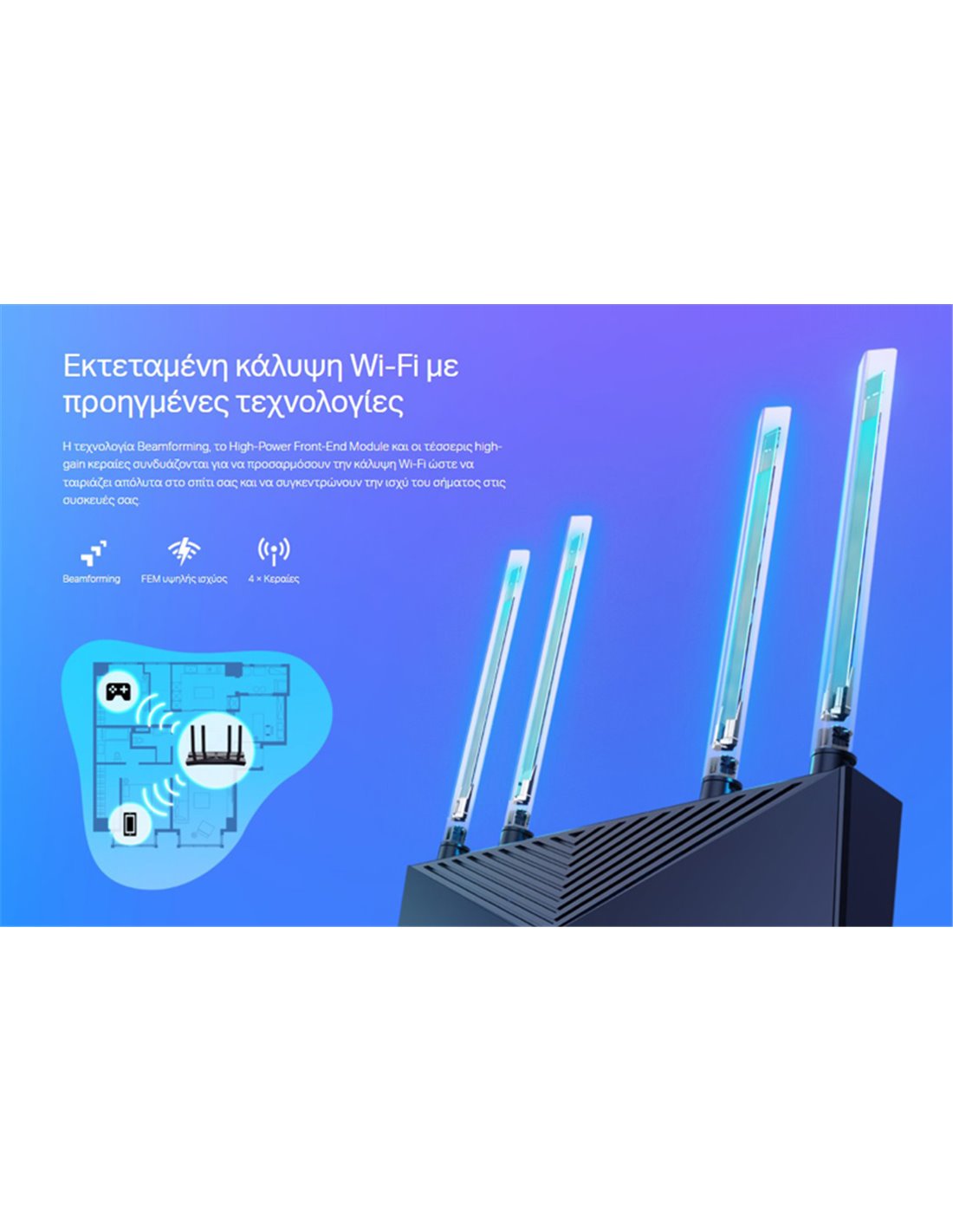 WiFi Range: Κατοικίες 3 υπνοδωματίων, 4x Σταθερές κεραίες υψηλής απόδοσης, Beamforming, High-Power FEM