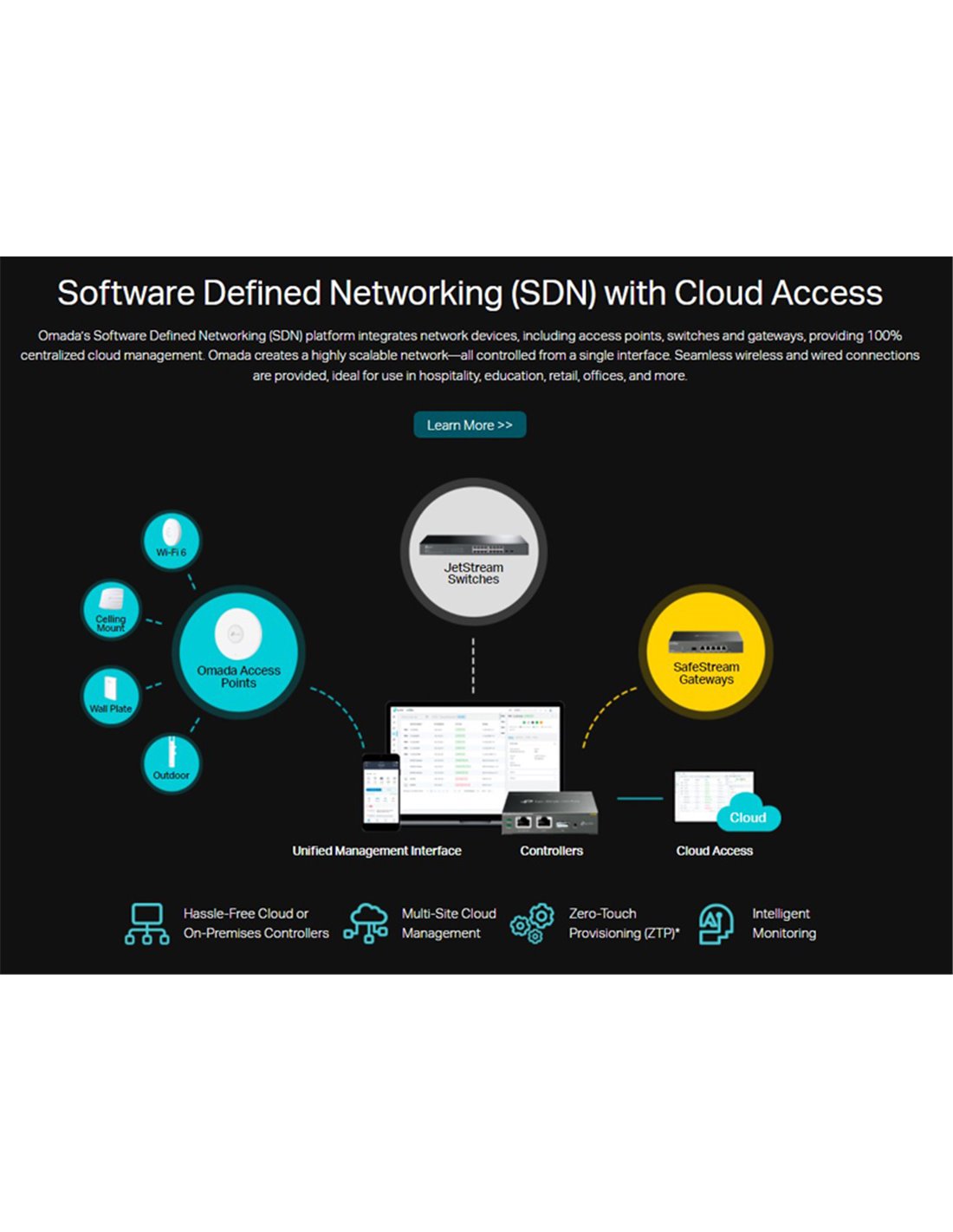 Μέσω της πλατφόρμας Network Defined Networking (SDN) της Omada, ενσωματώνει συσκευές δικτύου, συμπεριλαμβανομένων access points, switches και gateways, παρέχοντας σας 100% κεντρική διαχείριση cloud.