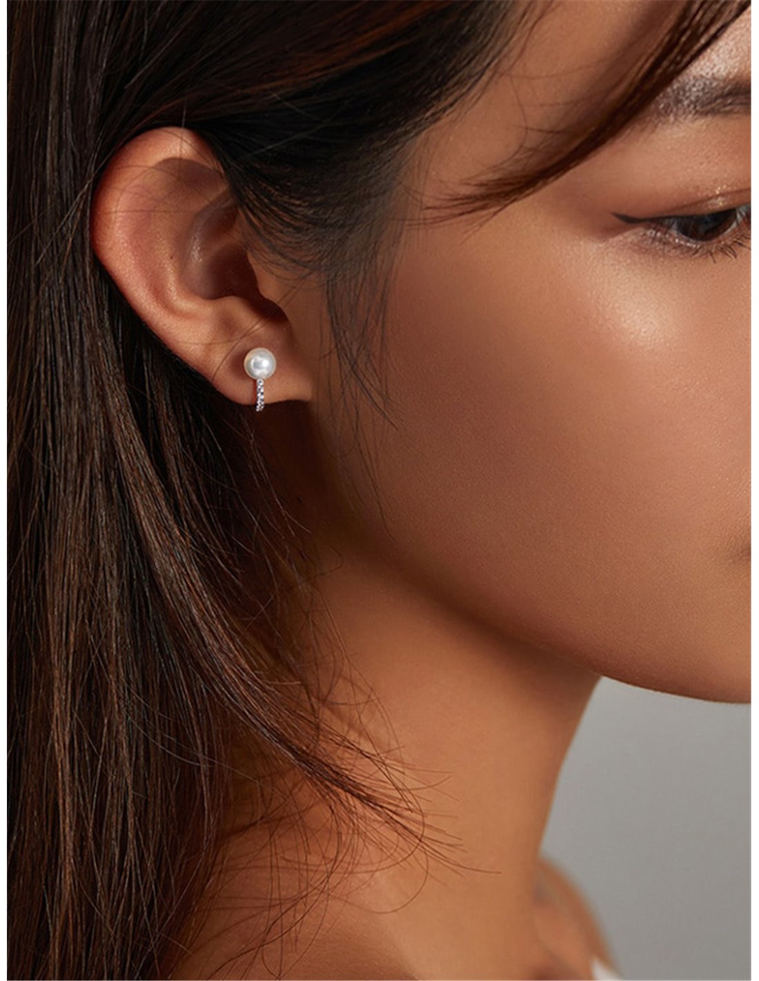 Κομψα σκουλαρίκια κρίκος Bamoer κατασκευασμένα από ασήμι 925 με επιπλατίνωμα, διακοσμημένα με αστραφτερή κυβική ζιρκόνια και πέρλα λευκού χρώματος.