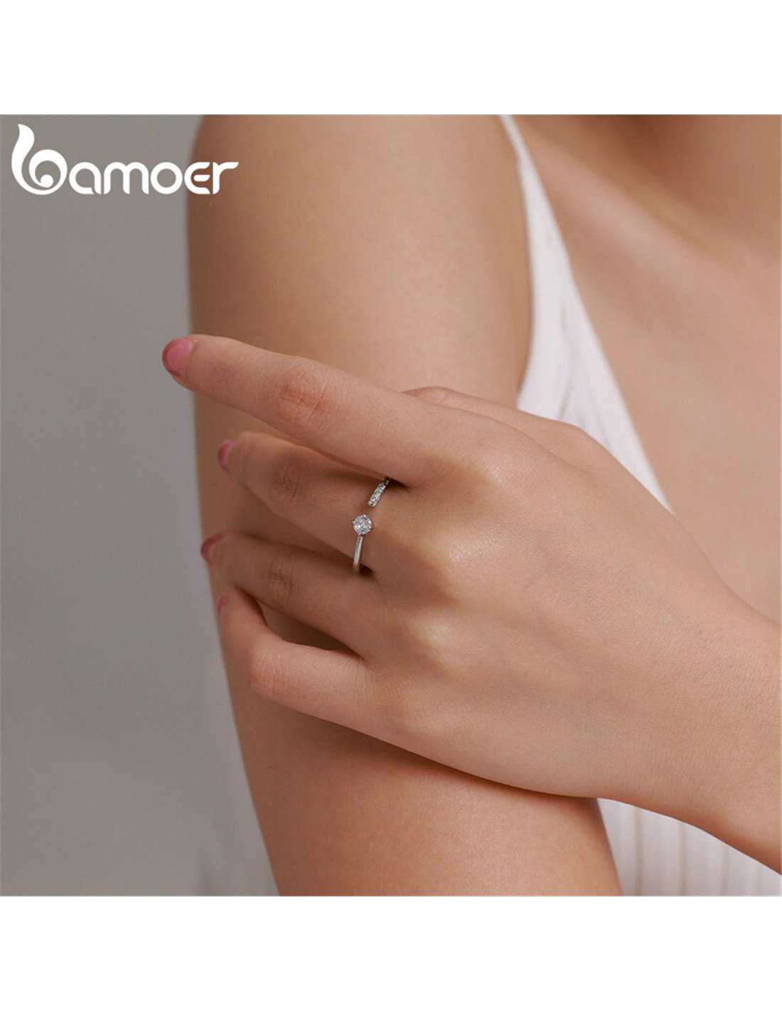 BAMOER δαχτυλίδι BSR203-A, κυβική ζιρκόνια, ανοιγόμενο, ασήμι 925, ασημί