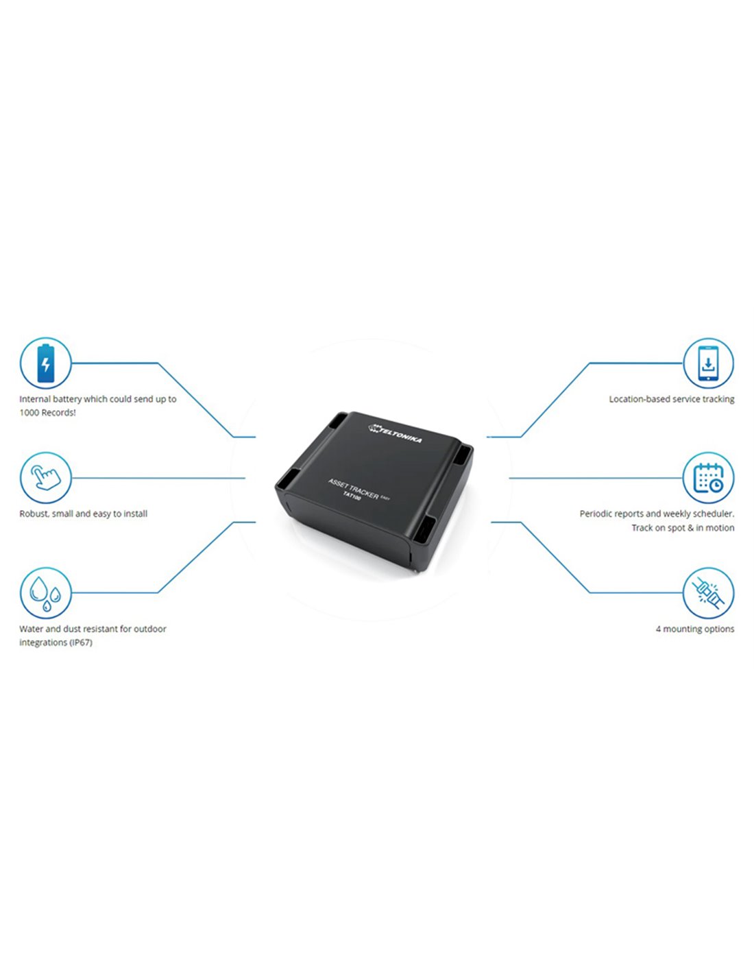 Το μοντέλο TAT100 της Teltonica είναι ένα εξελιγμένο GSM/GPRS/GNSS tracker που σας επιτρέπει να εντοπίζετε εύκολα την τοποθεσία των περιουσιακών σας στοιχείων.