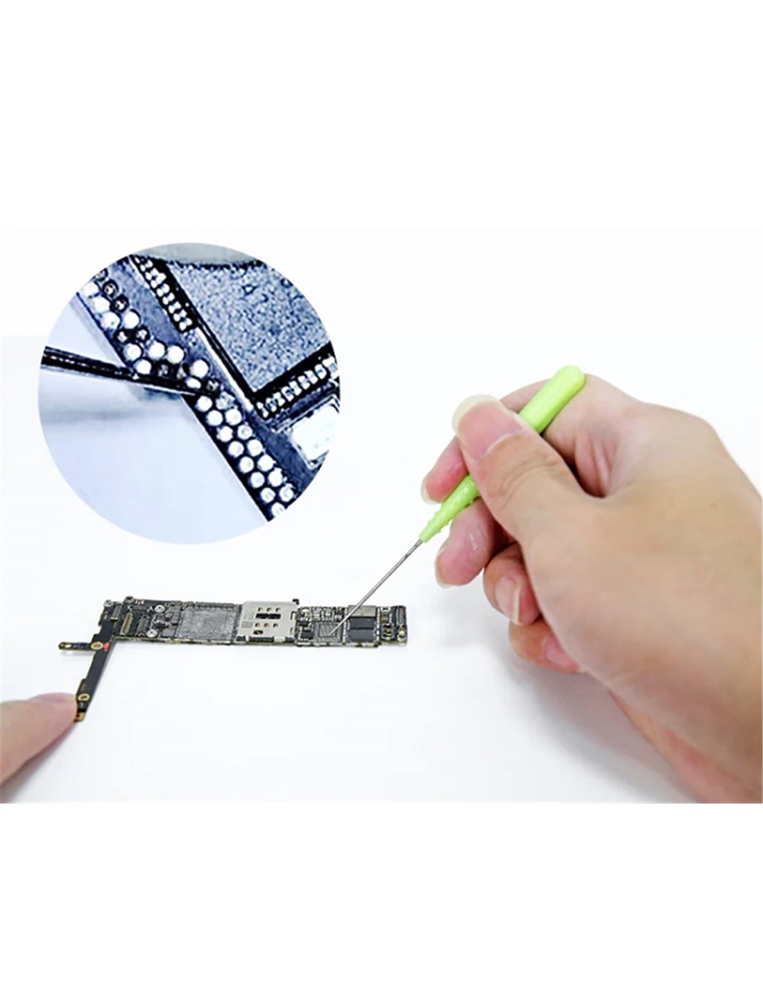 Εργαλείο κατάλληλο για γρήγορη συγκόλληση σημείου, ξύσιμο, καθαρισμό και άλλες εργασίες ακριβείας σε motherboard PCB κινητού τηλεφώνου. Η άκρη του εργαλείου είναι πολύ λεπτή και αιχμηρή. Η συσκευασία αποτελείται από 2 εργαλεία, 1 με ίσια μύτη και 1 με κυρτή μύτη.