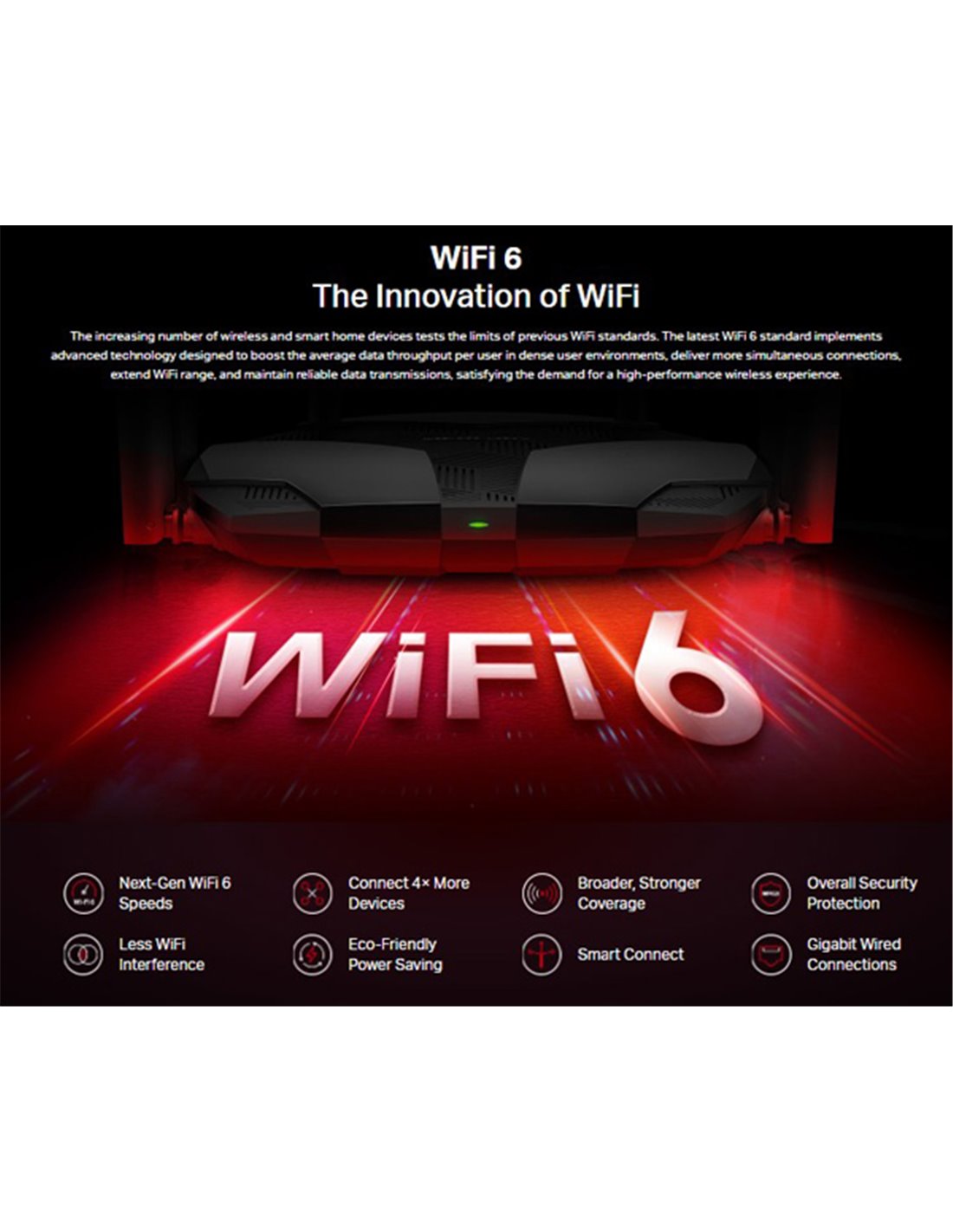 -Ταχύτητες επόμενης γενιάς WiFi 6: Ταχύτητες WiFi 6 που φτάνουν έως 1.8Gbps (1201Mbps στη ζώνη 5GHz και 574Mbps στη ζώνη 2.4 GHz)