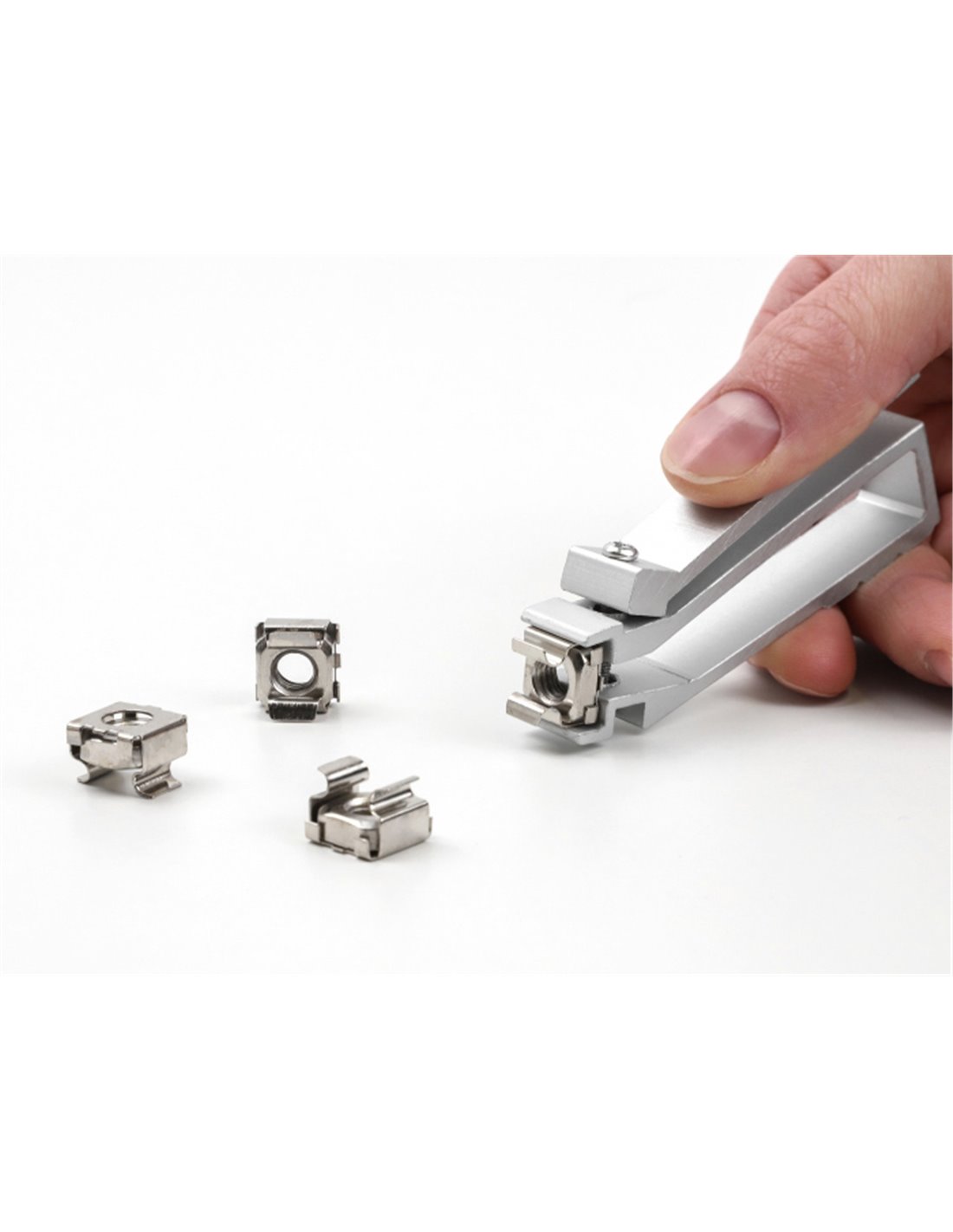 Αυτό το εργαλείο της Delock διευκολύνει την εισαγωγή ή αφαίρεση παξιμαδιών μεγέθους M4, M5 και M6 σε μια καμπίνα δικτύου. Αποτρέπει τη φθορά της διατομής της σιδηροτροχιάς στο πλαίσιο και τους τραυματισμούς στα δάχτυλα.