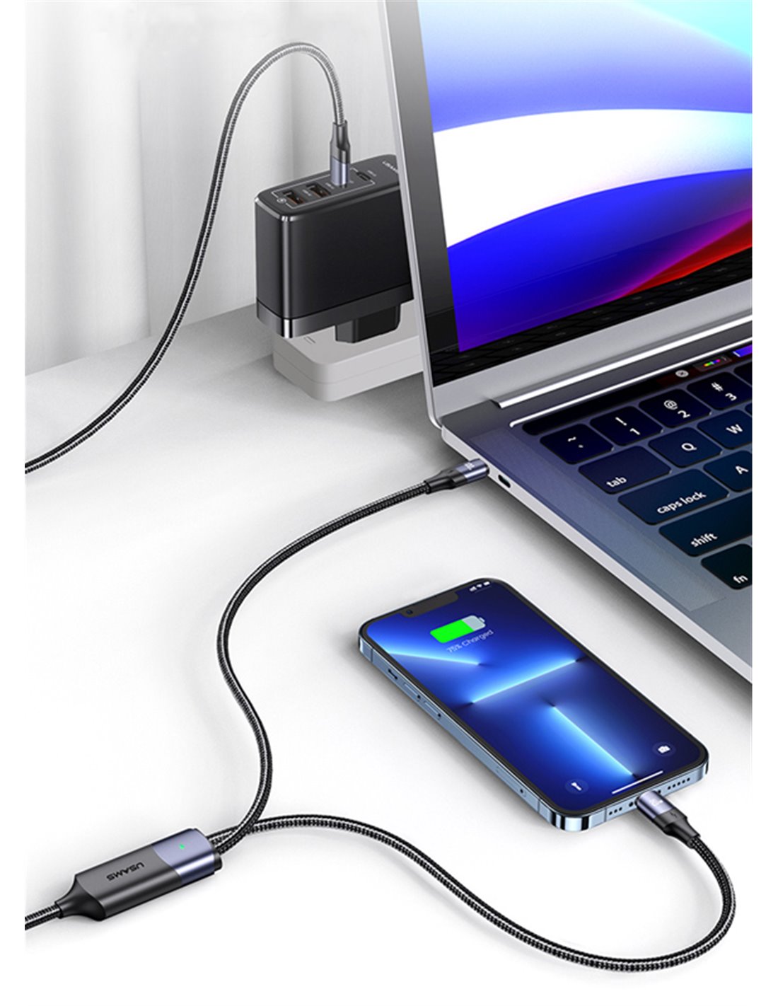 Καλώδιο φόρτισης και μεταφοράς δεδομένων USB-C σε USB-C και Lightning της Usams, με απόδοση φόρτισης έως 100W.