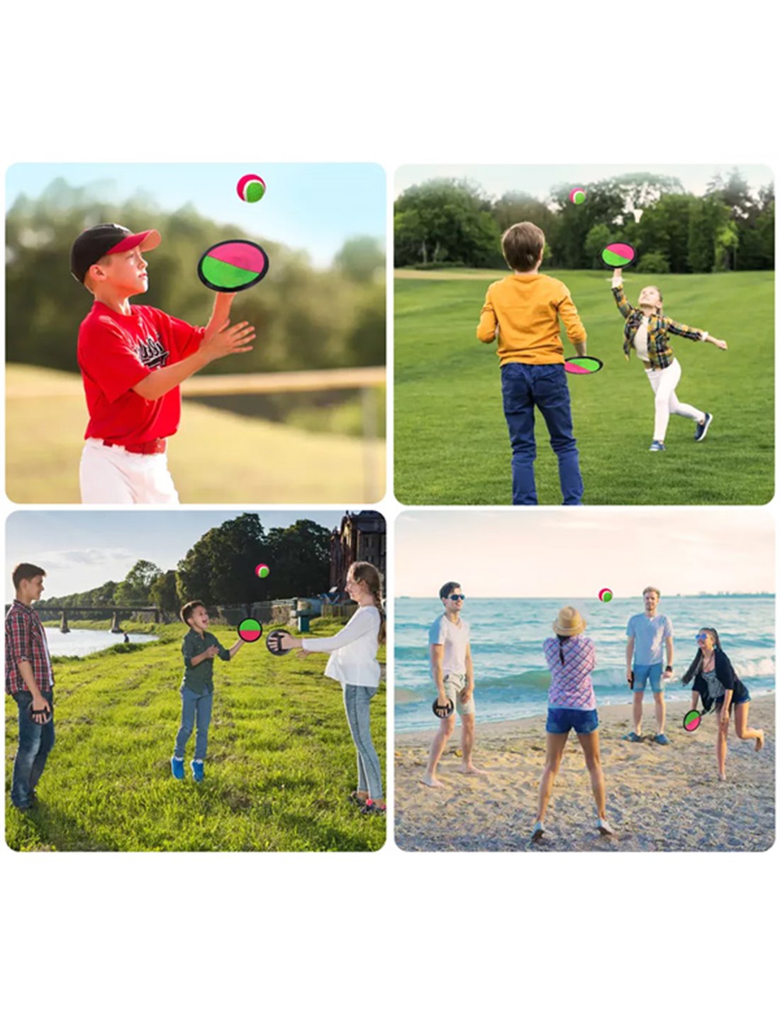 Παιχνίδι για παιδιά, με δίσκους και μπαλάκι τύπου Velcro, ιδανικό για την παραλία και άλλους υπαίθριους χώρους. Προσφέρει στιγμές διασκέδασης, γυμνάζοντας παράλληλα το σώμα και βελτιώνοντας τις κινητικές δεξιότητες των παιδιών.