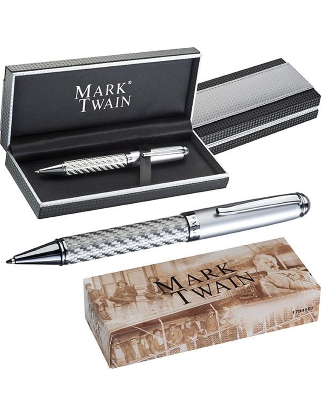 Στυλό πολυτελείας από μέταλλο σε ασημένιο carbon με κλιπ. Είναι τοποθετημένο σε πολυτελές κουτί δώρου ίδιας σχεδίασης με το στυλό. Χρώμα γραφής: μπλε. Διαστάσεις: Υ14,7xØ1,3εκ.