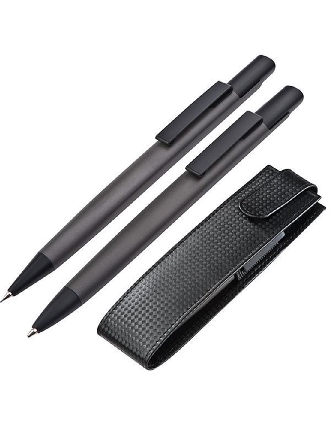 Σετ στυλό - μολύβι γκρι πολυτελείας από μέταλλο με κλιπ.