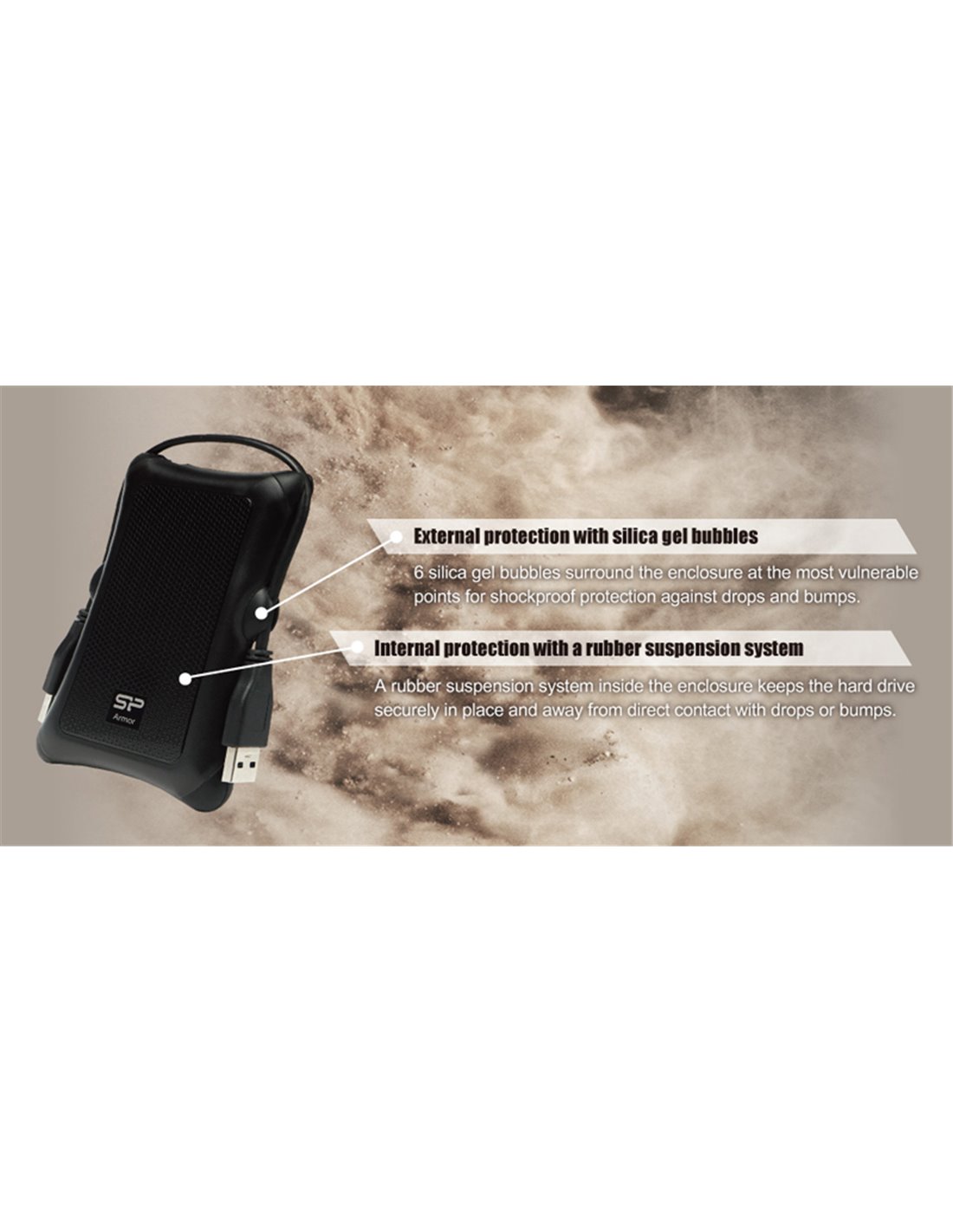 Εξωτερικός σκληρός δίσκος Armor A30 της Silicon Power, εξαιρετικά ανθεκτικός στα χτυπήματα (MIL-STD-810G).