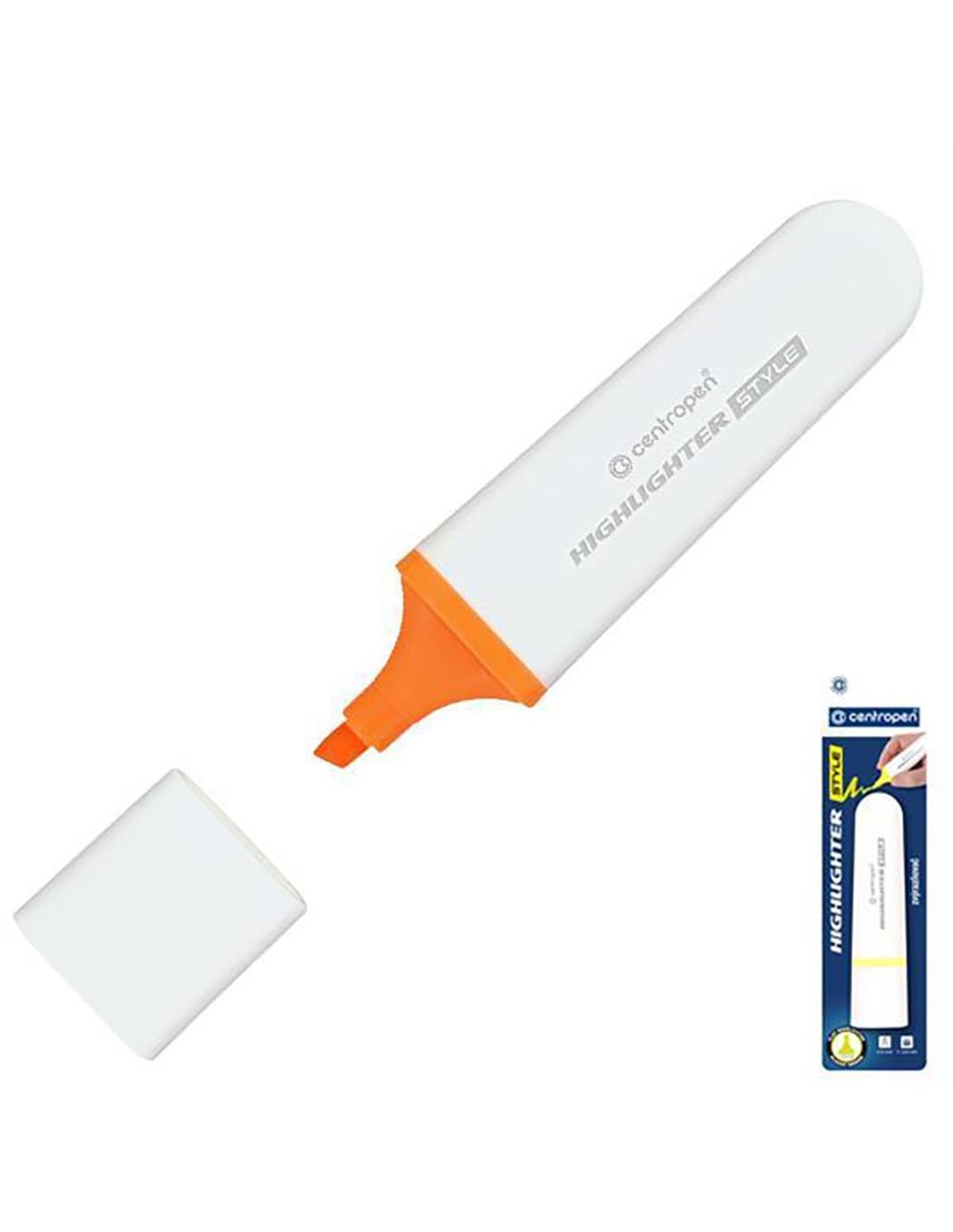 Centropen μαρκαδόρος υπογράμμισης (highlighter) σε blister με κομψό σχεδιασμό, για ομαλή και εύκολη επισήμανση κειμένου σε κάθε είδους χαρτί. Πλάτος γραμμής 1 – 4,6 mm. Χρώμα γραφής: πορτοκαλί. Κατασκευάζονται στην Τσεχία.