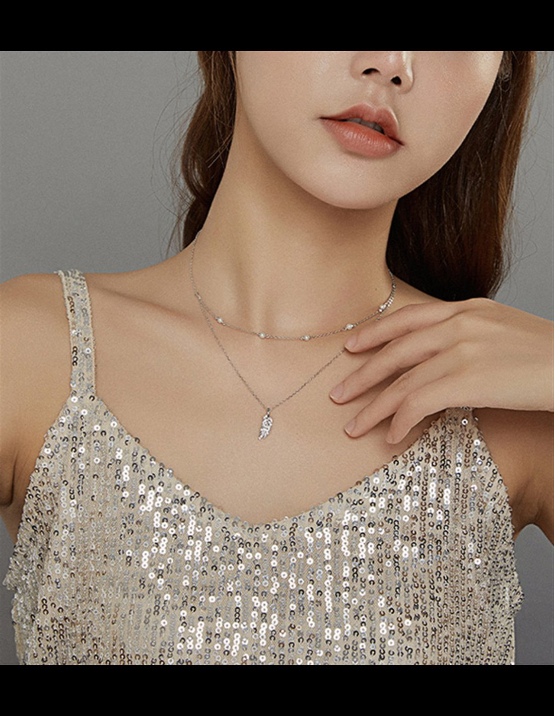 Εντυπωσιακό κολιέ, με ιδιαίτερο και μοναδικό design. Διαθέτει δυο αλυσίδες, η μία διακοσμημένη με πέρλες και η άλλη με μενταγιόν σε σχήμα φτερού, διακοσμημένο με κυβική ζιρκόνια που αντανακλά μοναδικά το φως και προσφέρει λάμψη στο κόσμημα.