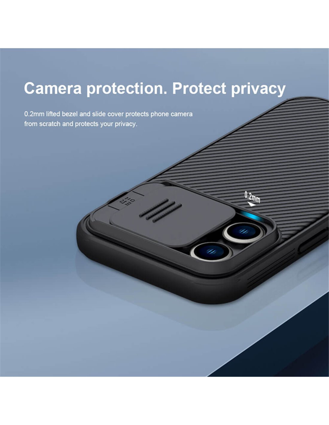 Η σειρά CamShield Pro της Nillkin χαρακτηρίζεται από την ενισχυμένη προστασία που προσφέρει το σκληρό υλικό κατασκευής της με την ανάγλυφη επιφάνεια αλλά και την έξτρα προστασία των καμερών και της ιδιωτικότητας σας, χάρη στο συρόμενο καπάκι της. Η επιφάνεια της είναι αντιολισθητική, έχει ενισχυμένα άκρα, δεν χαράσσεται και δεν κάνει δαχτυλιές.