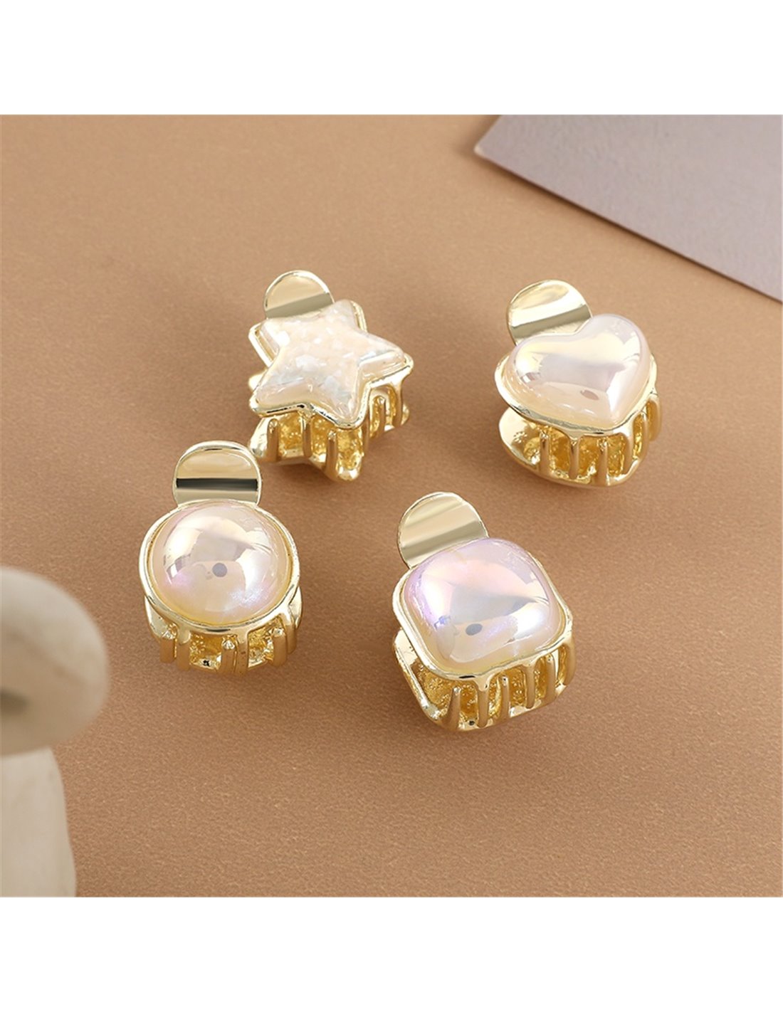 Μεταλλικό κλιπ μαλλιών σε χρυσό χρώμα, διακοσμημένο με στρογγυλή οπάλ πέτρα. Μπορεί να χρησιμοποιηθεί για την στερέωση των μαλλιών σας, αλλά και ως διακόσμηση στο χτένισμα σας.