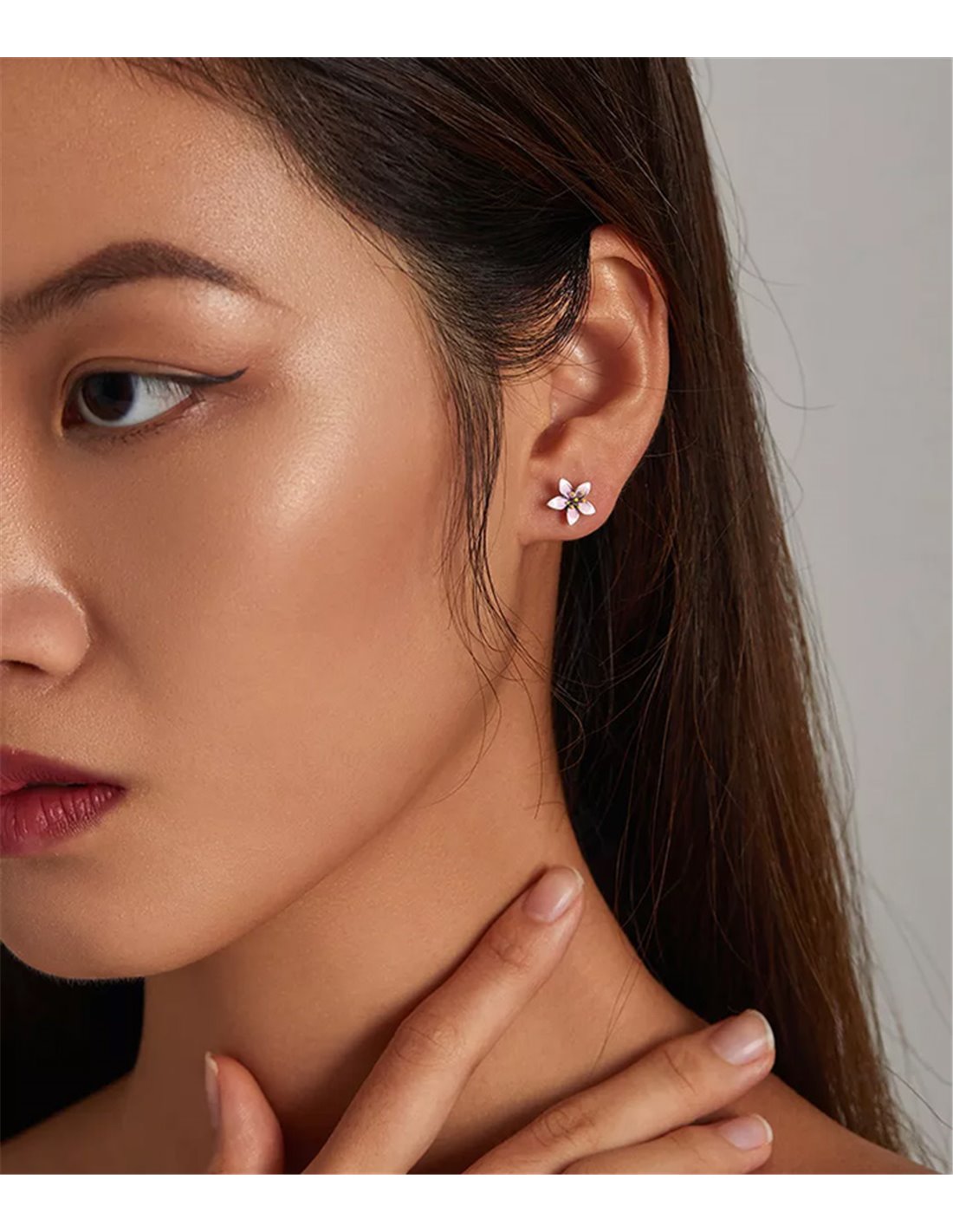 Εντυπωσιακά σκουλαρίκια Bamoer σε σχήμα λουλουδιού, κατασκευασμένα από ασήμι 925, σε απαλό ροζ χρώμα και λεπτομέρειες από οξειδωμένο ασήμι.