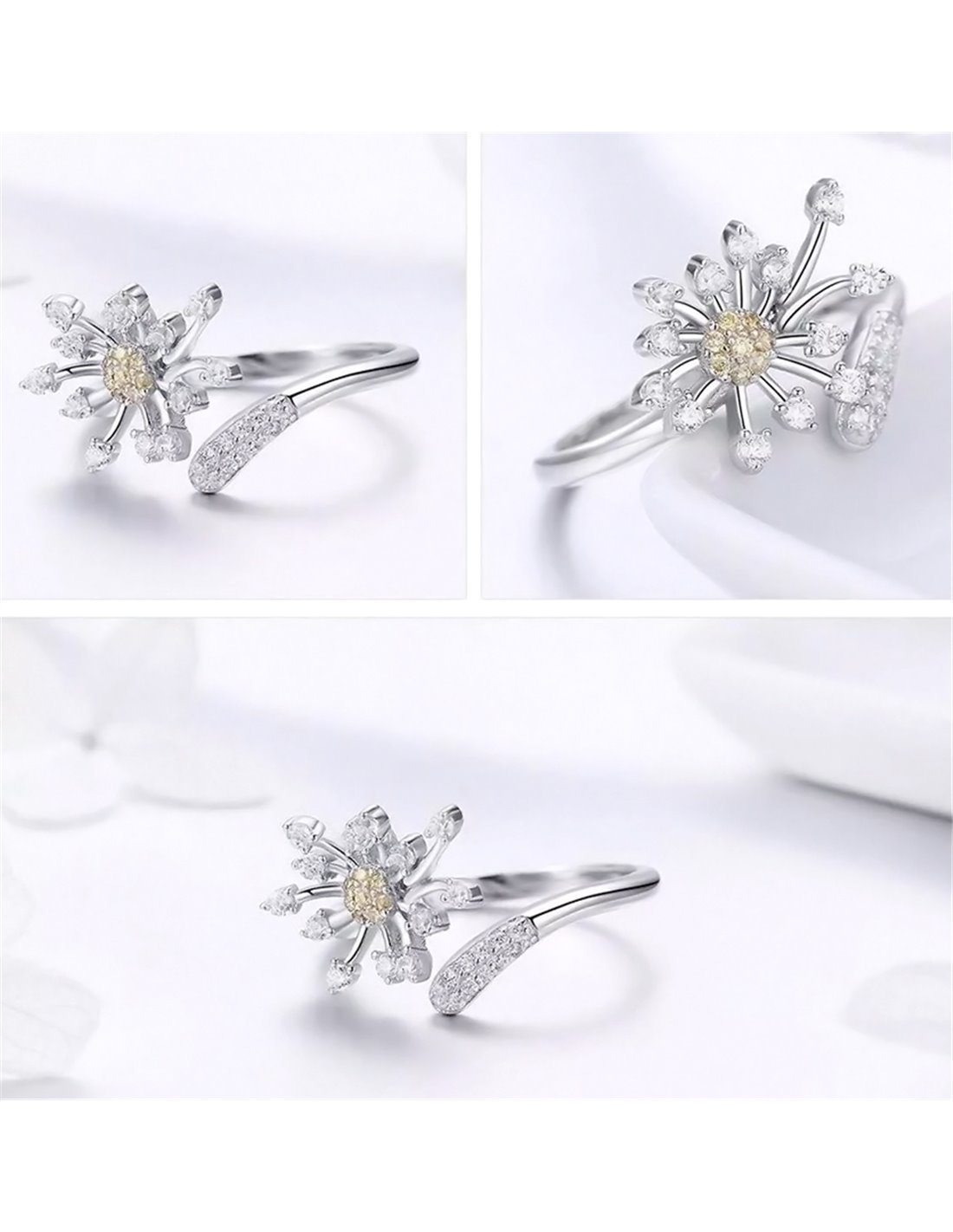 Εντυπωσιακό δαχτυλίδι, σε σχήμα dandelion, διακοσμημένο με αστραφτερή κυβική ζιρκόνια, λευκού χρώματος και χρυσού χρώματος, η οποία αντανακλά μοναδικά το φως και προσφέρει λάμψη στο κόσμημα.