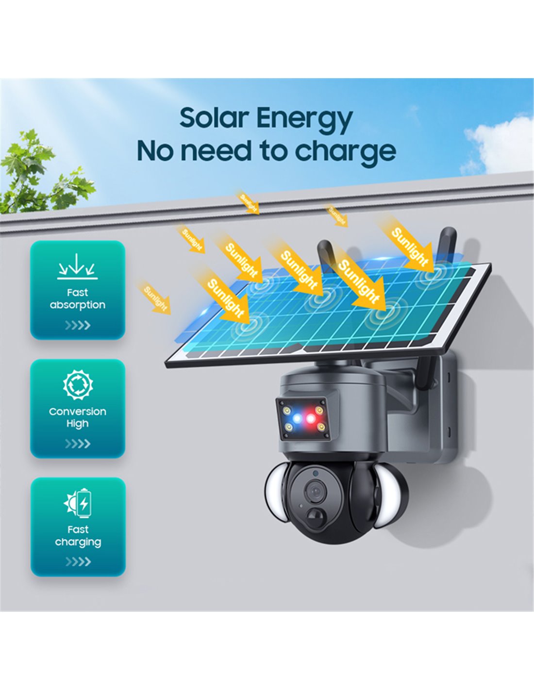 Τροφοδοτείται από ενσωματωμένες μπαταρίες χωρητικότητας 12000mAh, οι οποίες επαναφορτίζονται με ηλιακή ενέργεια μέσω του ηλιακού πάνελ.