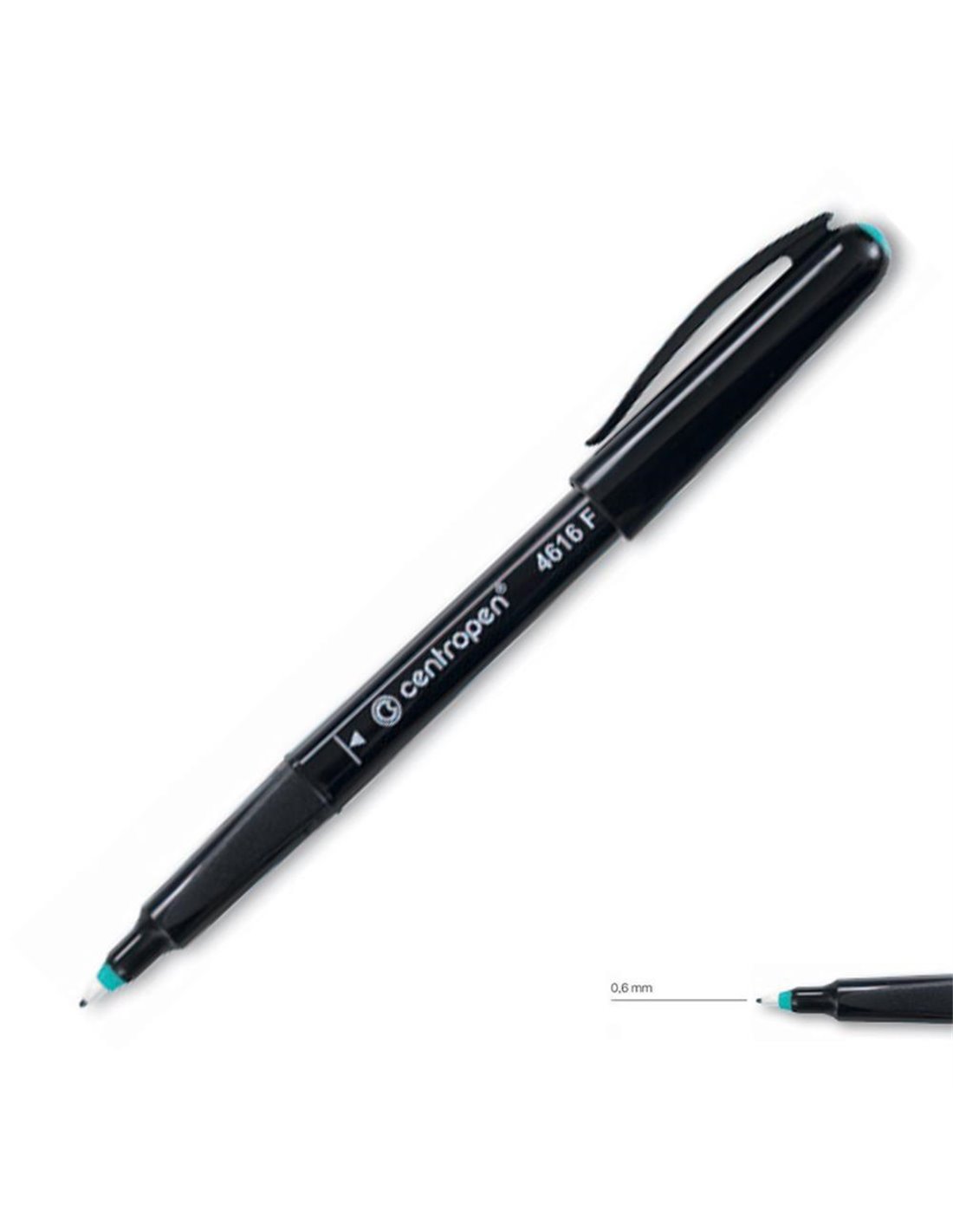 Centropen ανεξίτηλος μαρκαδόρος 0,6mm για CD/DVD. Χρώμα: μαύρο. Αδιάβροχος και δεν στεγνώνει όταν αφήνεις ανοιχτό το καπάκι. Γράφουν στις περισσότερες επιφάνεις; χαρτί, φιλμ, foil, γυαλί, πορσελάνη και CD/DVD.