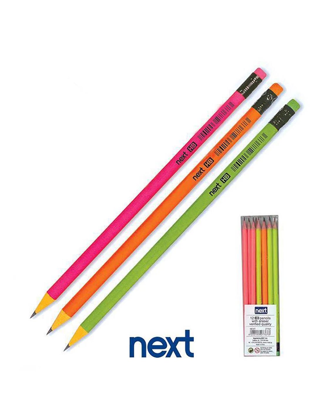 Next μολύβια HB. Άριστης ποιότητας και απαλής γραφής. Όμορφα φωσφορούχα χρώματα.