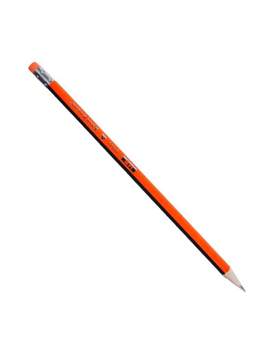Μολύβι με σβήστρα σε πορτοκαλί-μαύρο χρώμα. Η συσκευασία περιέχει 1 ξύστρα.