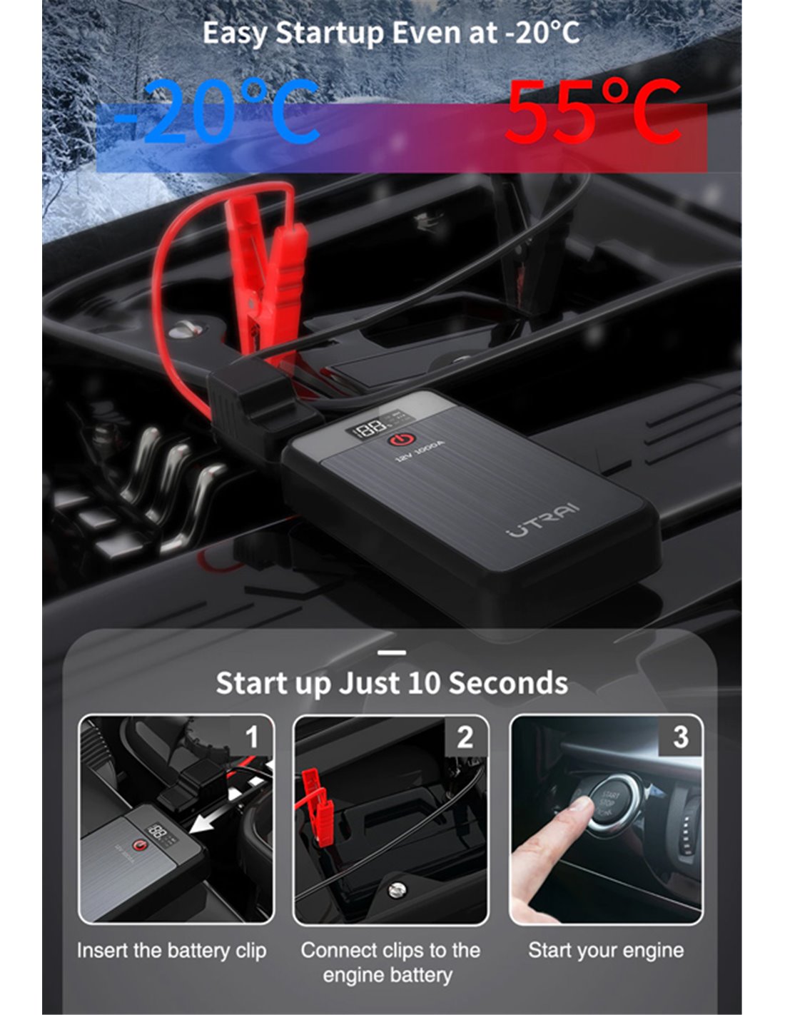 UTRAI εκκινητής μπαταρίας αυτοκινήτου Jstar Air με φακό, 12V/1000A, 13000mah