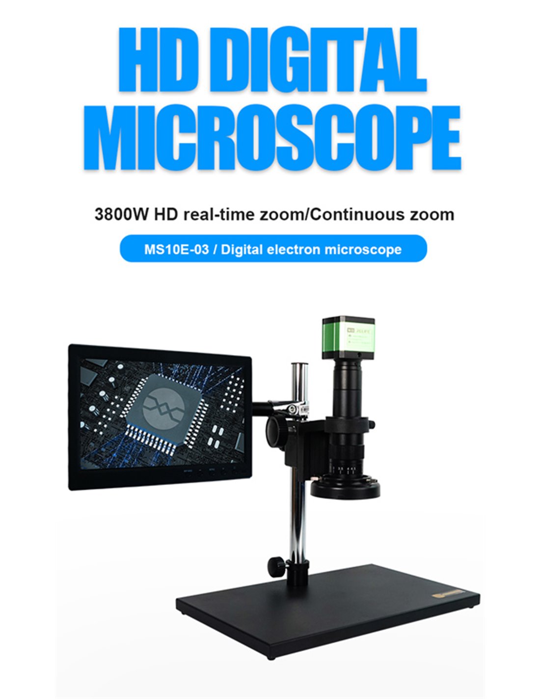 Ψηφιακό μικροσκόπιο με 10.1" οθόνη LCD της Sunshine, ιδανικό για επιθεώρηση ηλεκτρονικών εξαρτημάτων σε εργασίες επισκευής. Έχει εμβέλεια χειροκίνητης μεγέθυνσης 0.7x έως 4.5x και υποστηρίζει ψηφιακό zoom 8x. Υποστηρίζει λήψη φωτογραφιών και βίντεο ενώ διαθέτει και LED φωτισμό για καλύτερη ορατότητα κατά την εργασία σε πιο σκοτεινό περιβάλλον.