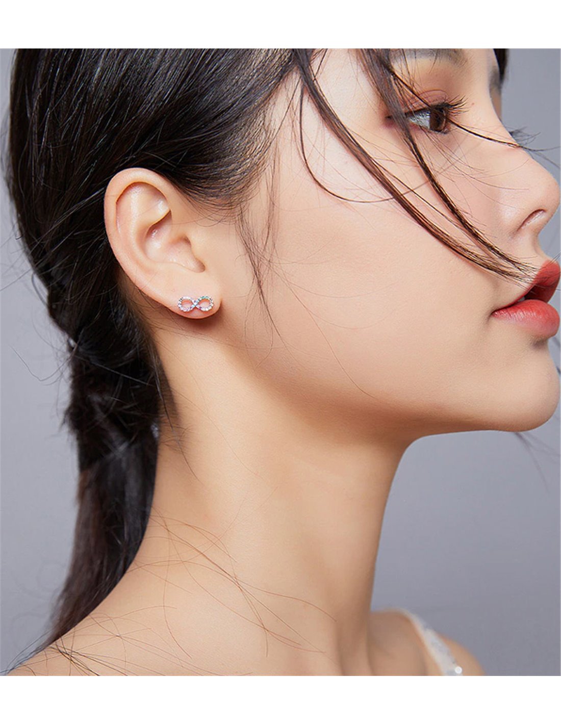 Εντυπωσιακά σκουλαρίκια με το σύμβολο του απείρου, σε ασημί χρώμα, διακοσμημένο με κυβική ζιρκόνια σε εντυπωσιακά χρώματα που προσφέρει εξαιρετική λάμψη στο κόσμημα.
