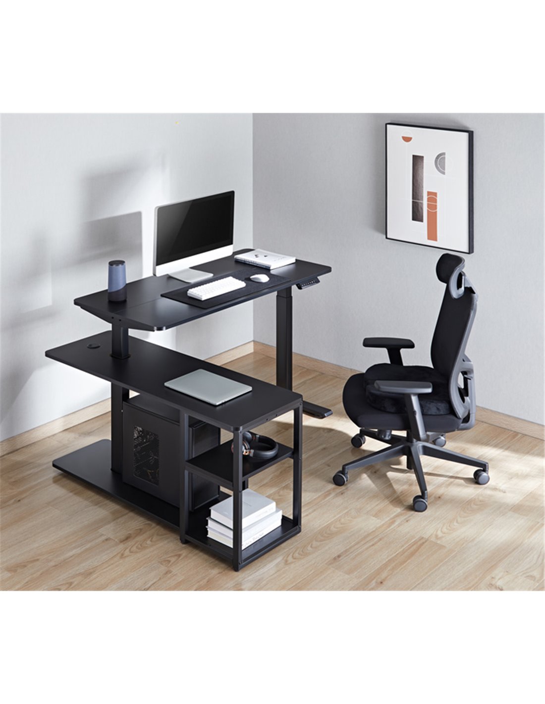 Το ύψος του γραφείου μπορεί να ρυθμιστεί με την χρήση των πλήκτρων στο χειριστήριο ελέγχου, επιτρέποντας σας να εργαστείτε σε καθιστή ή όρθια στάση, ανάλογα με τις ανάγκες σας. Ο ισχυρός κινητήρας ανύψωσης παρέχει ομαλή, σταθερή λειτουργία με μηδενικούς κραδασμούς κατά τις μεταβάσεις.